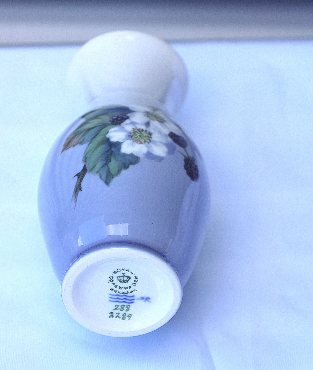 Royal Copenhagen. Vase, nr. 288/2289, dekoreret med brombær ranker, bundfarven er blåtone.