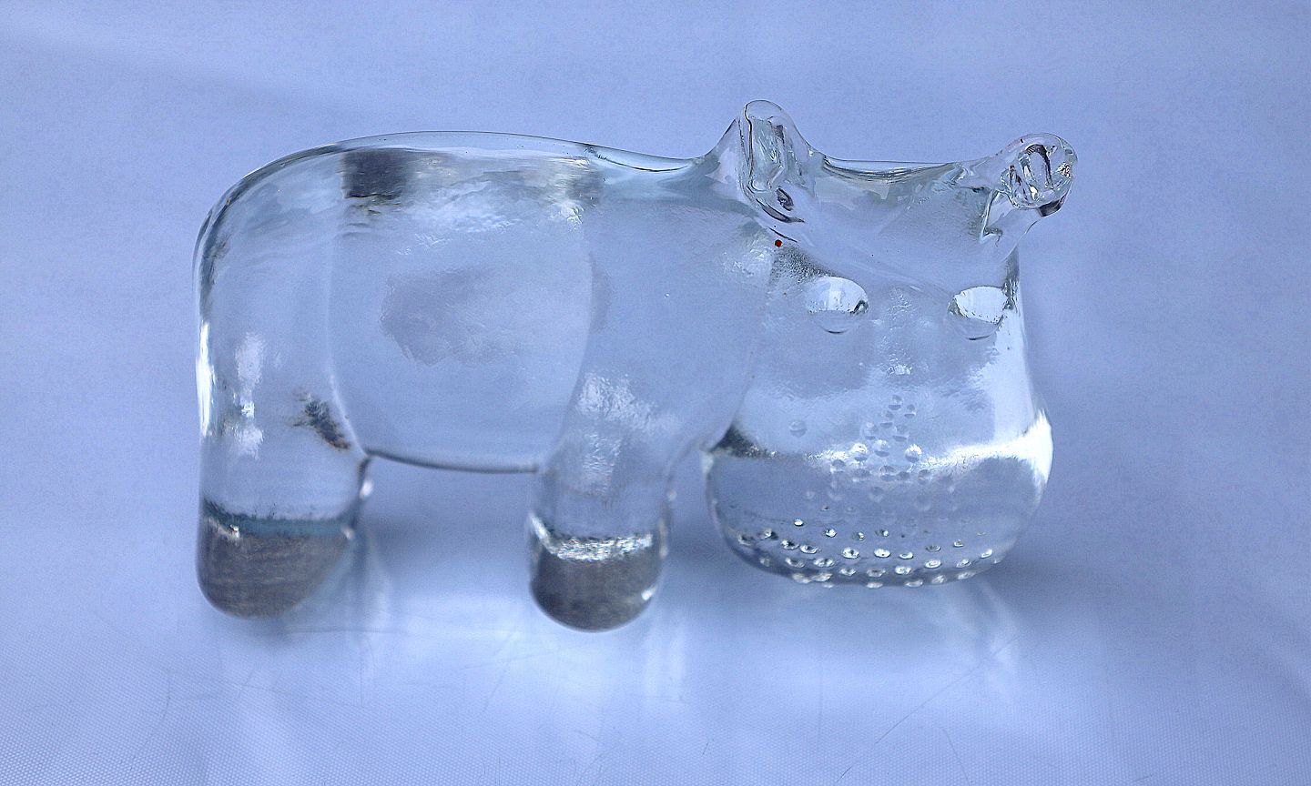 Kosta Boda. Flad flodhest, beregnet til at stå. Flodhesten hører til Kosta Bodas Zoo serie.