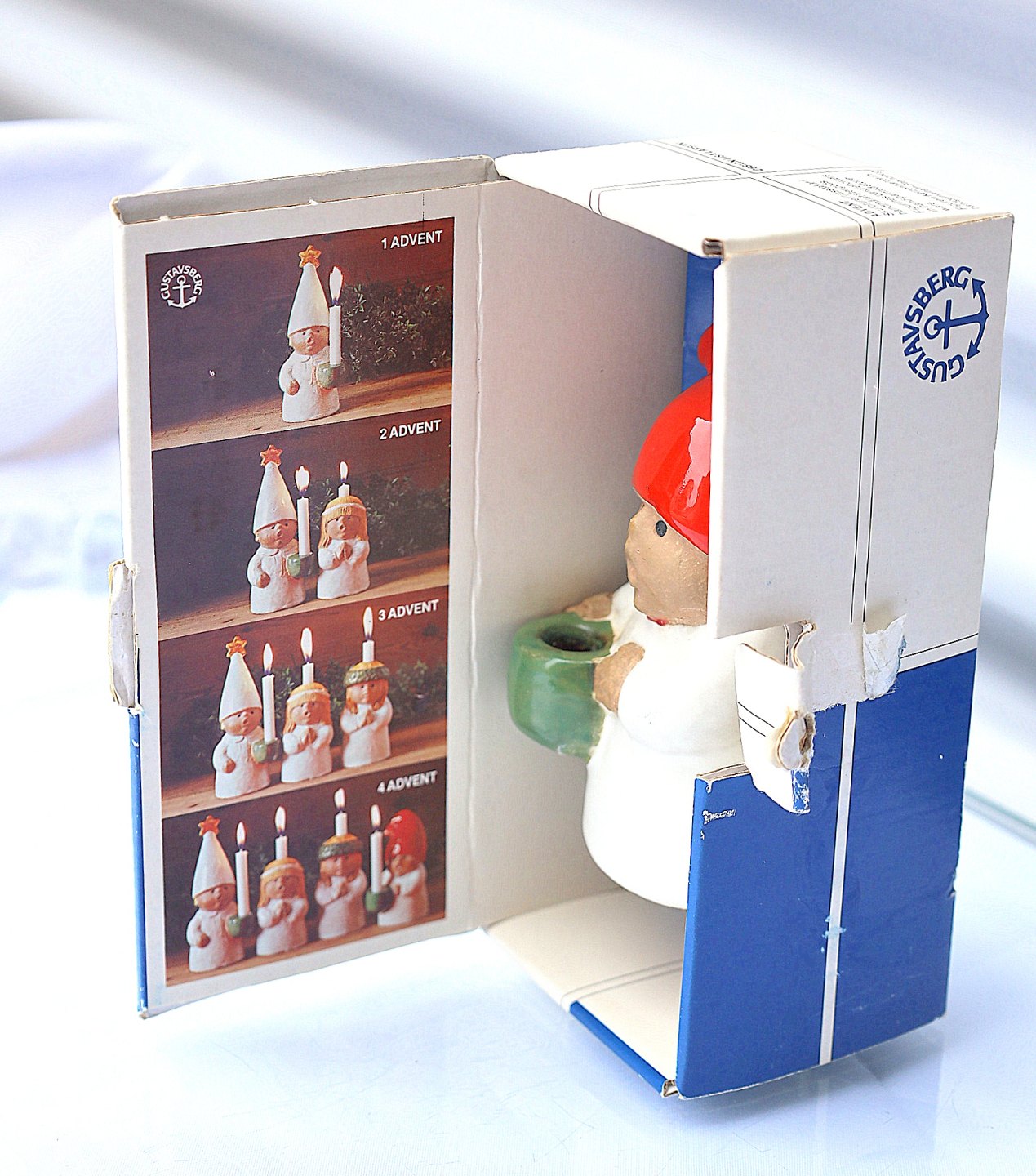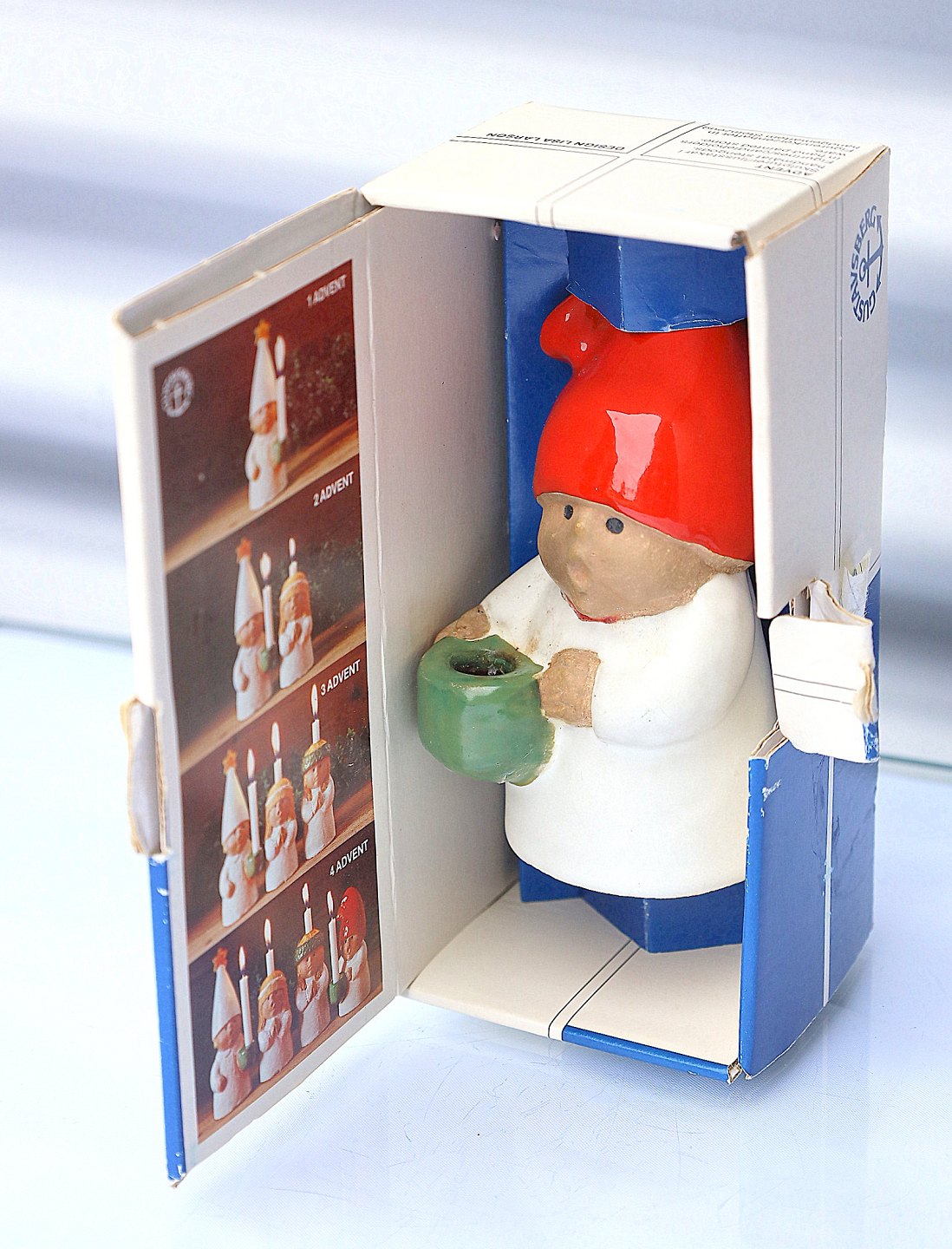 Lisa Larson, Gustavsberg. Advents nisse, Tomta nr. 5211710404. Nissen er fra serien Advents Children. Tomta er beregnet til 1 adventslys.