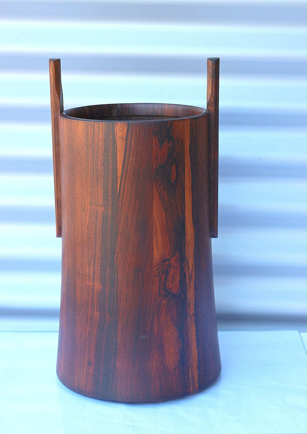 Jens Harald Quistgaard = IHQ. Isspand/ champagnekøler. Isspanden er lavet i Rio Palisander og fortet med plast og med påsatte hanke. Isspanden stammer fra bo efter tidligere direktør på Nissen og er formentlig en prototype.