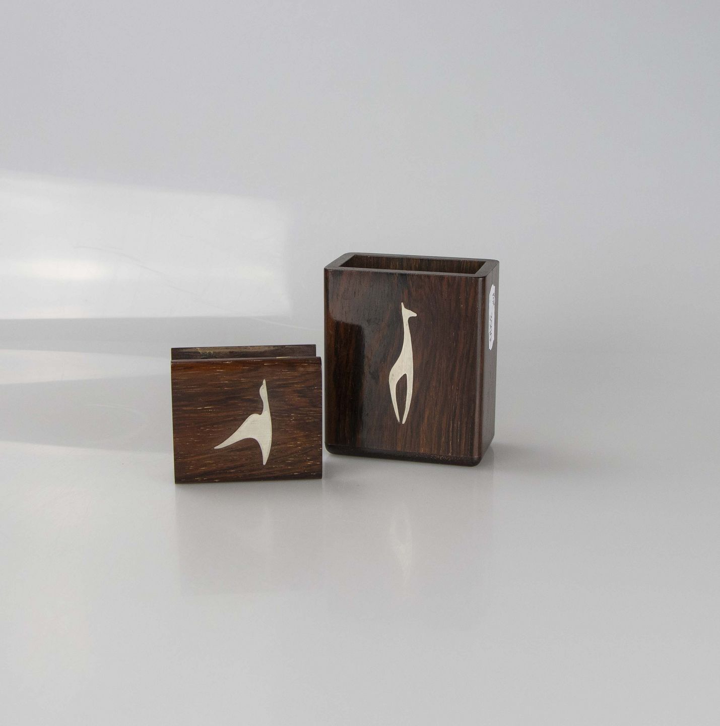 Cigaret og tændstik etui i palisander træ med sølvintarsia