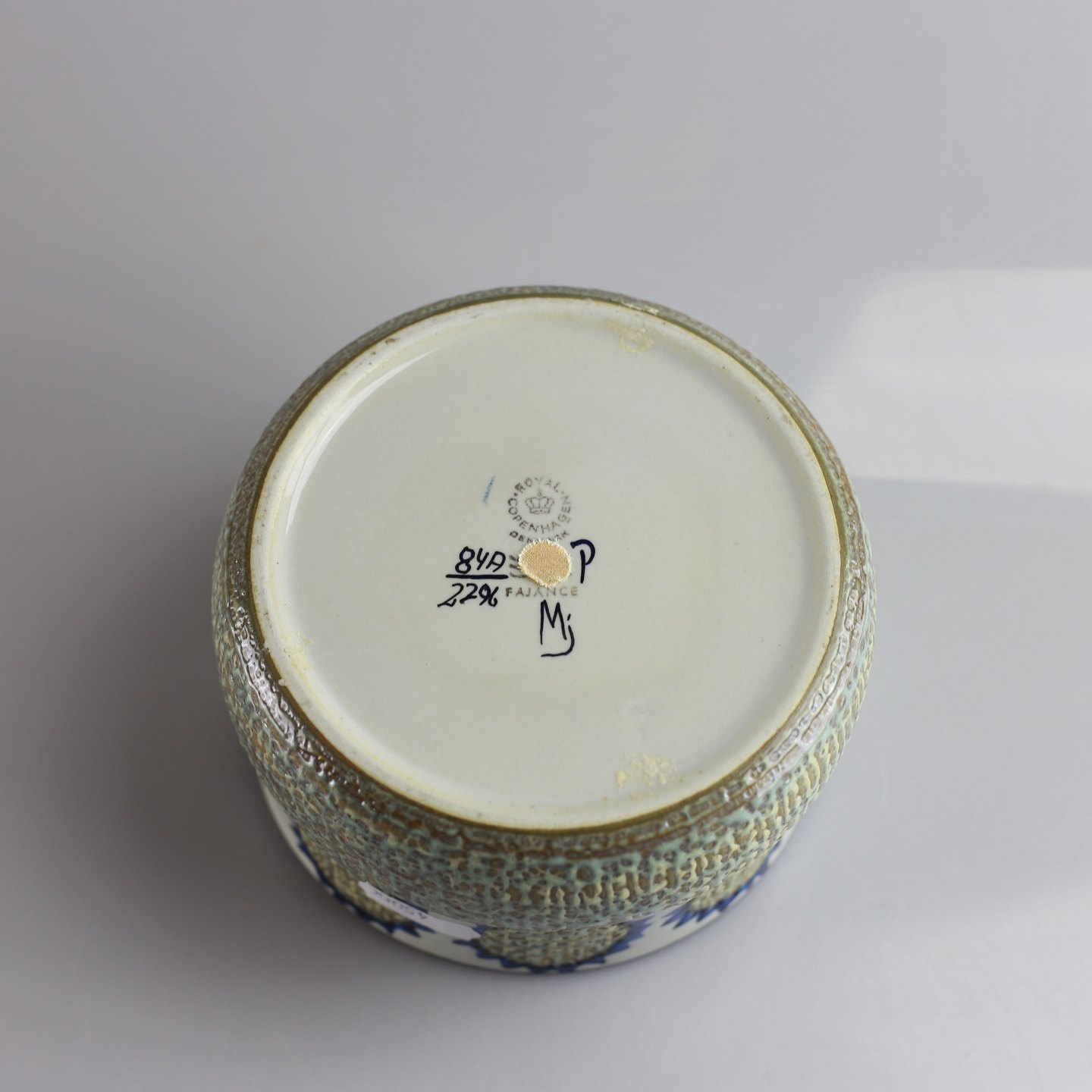 RC, kgl, kongelig porcelæn fajance i blå og grå farver skål