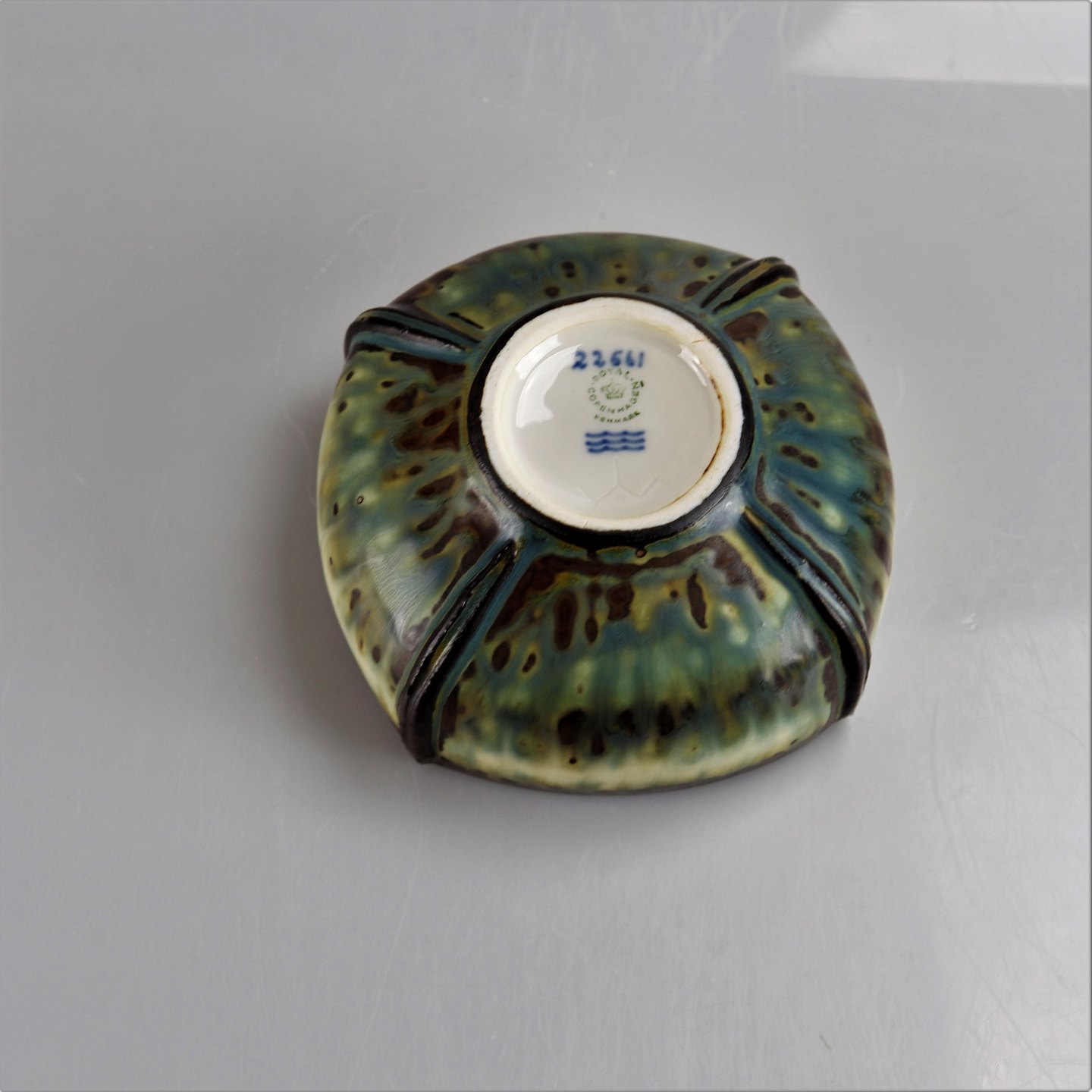 kgl kongelig porcelænsfabrik stentøj, IW, skål, løbeglasur i brune og hvide farver