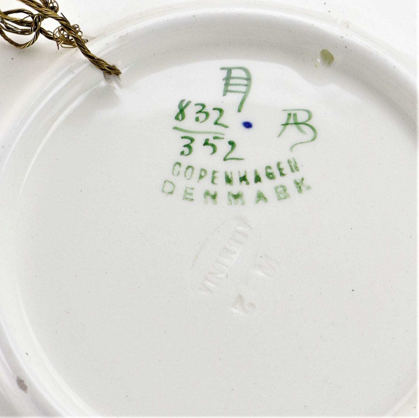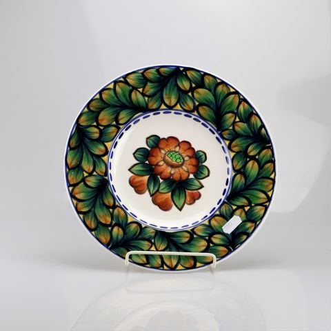 Aluminia platte dekoreret med løvkrans og stor blomst.