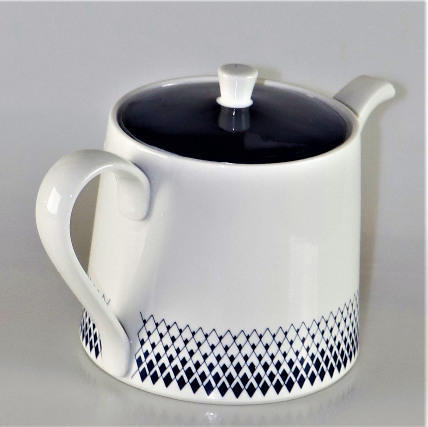 Tekande med blåt låg, kande, romber, blåt mønster, ildfast