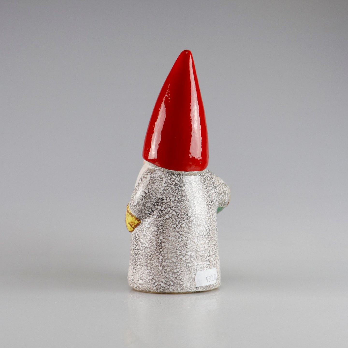 Stentøjsfigur af nisse med høj rød hat og stort hvidt skæg.