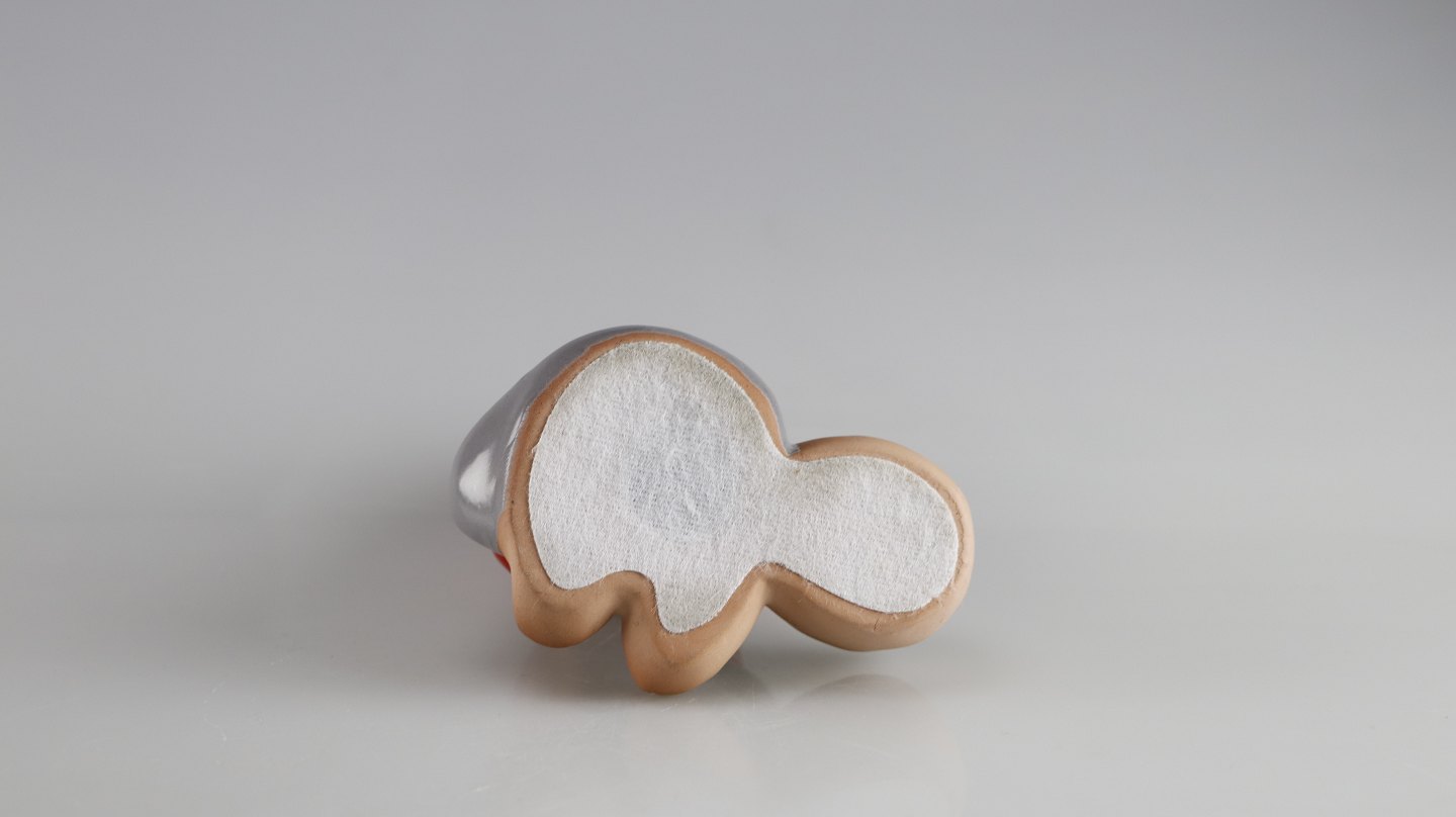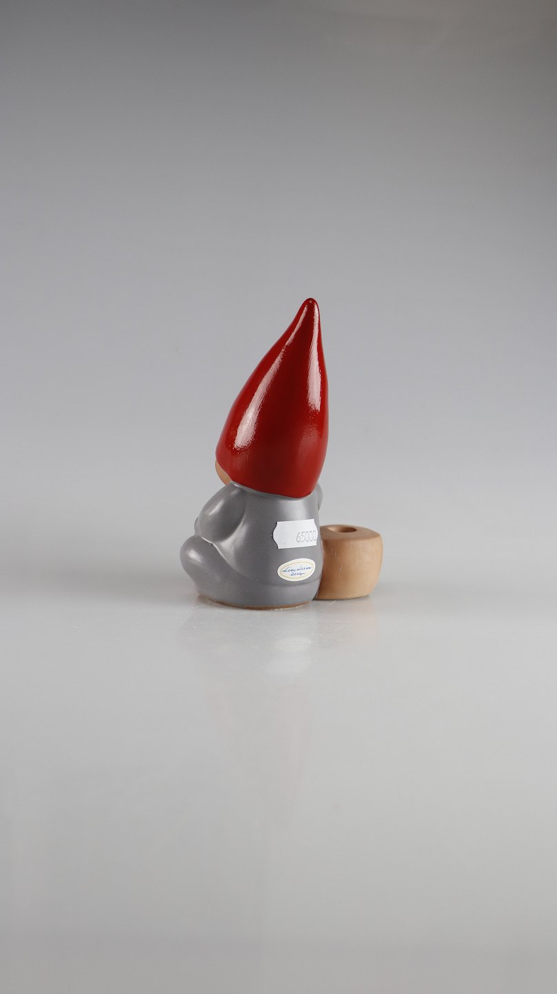 Keramik julenisse med røde luffer og stage til et kertelys.