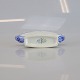 Vase i hvidt porcelæn med skelform og motiv af guirlander med blå blomster