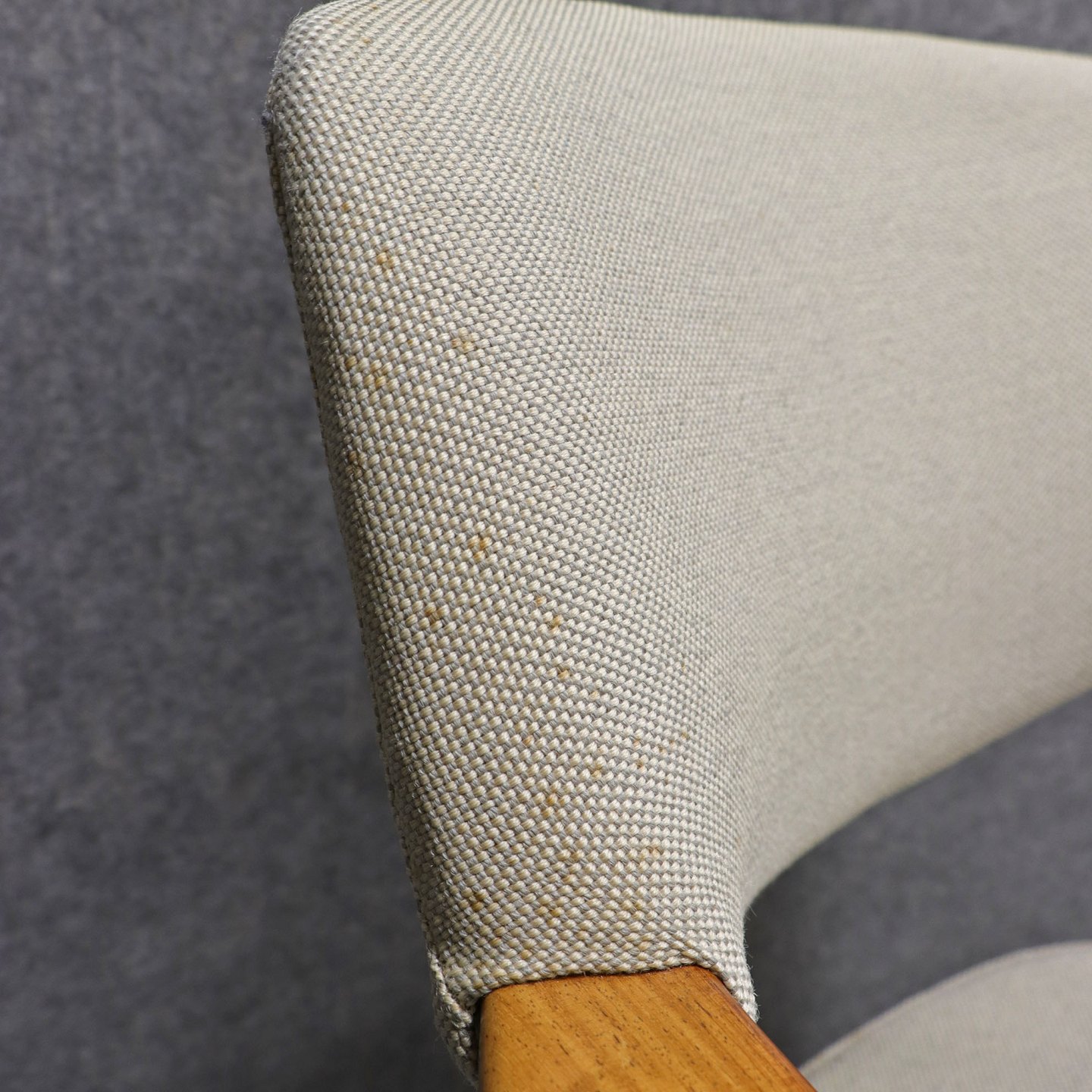 Stol med armlæn i lakeret Palisander. Sæde og ryglæn betrukket med lyst uldstof.