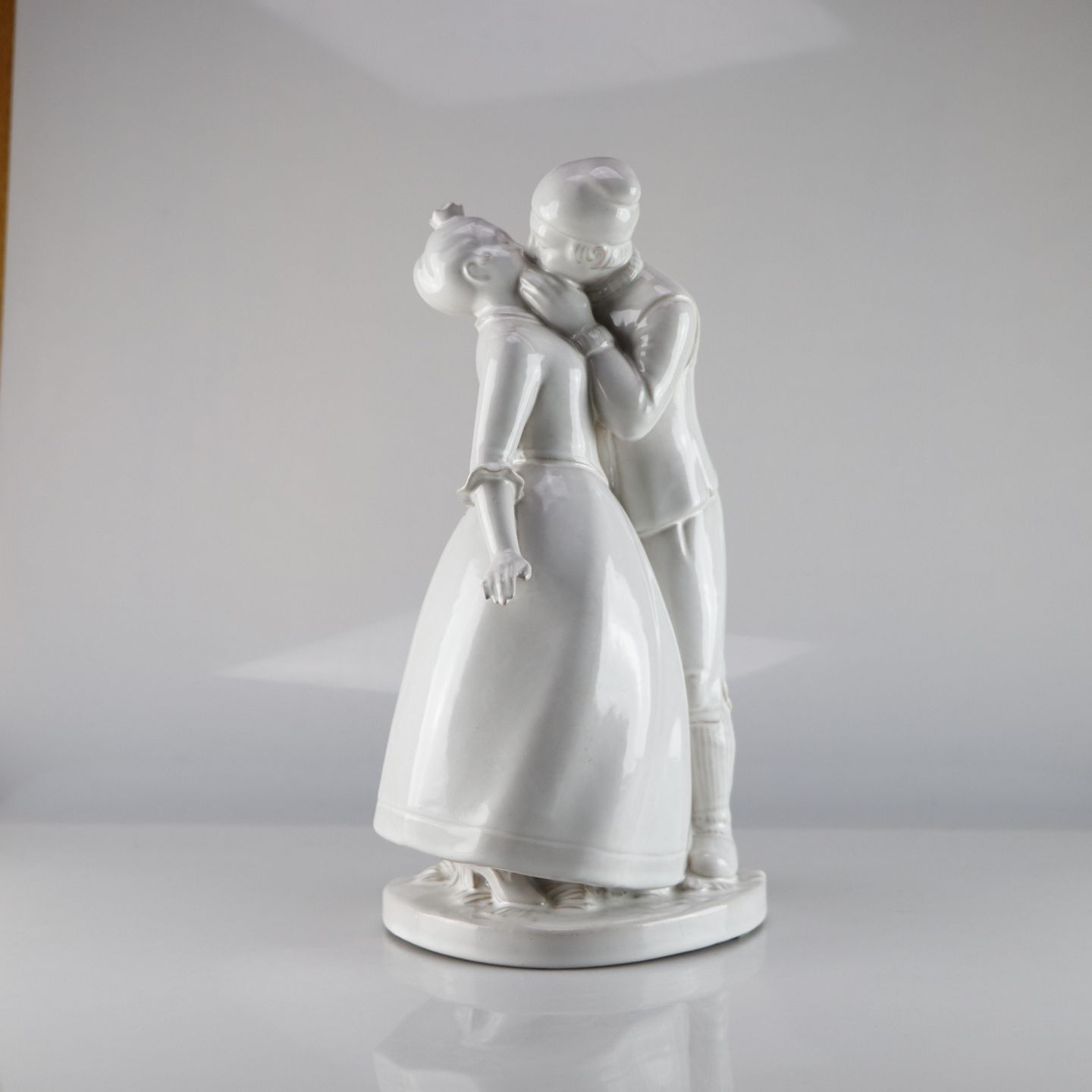 Prinsessen og svinedrengen af porcelæn, der giver et kys