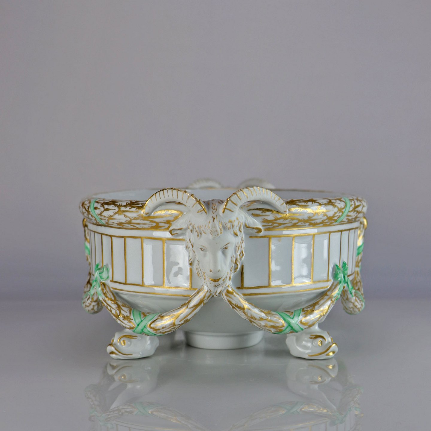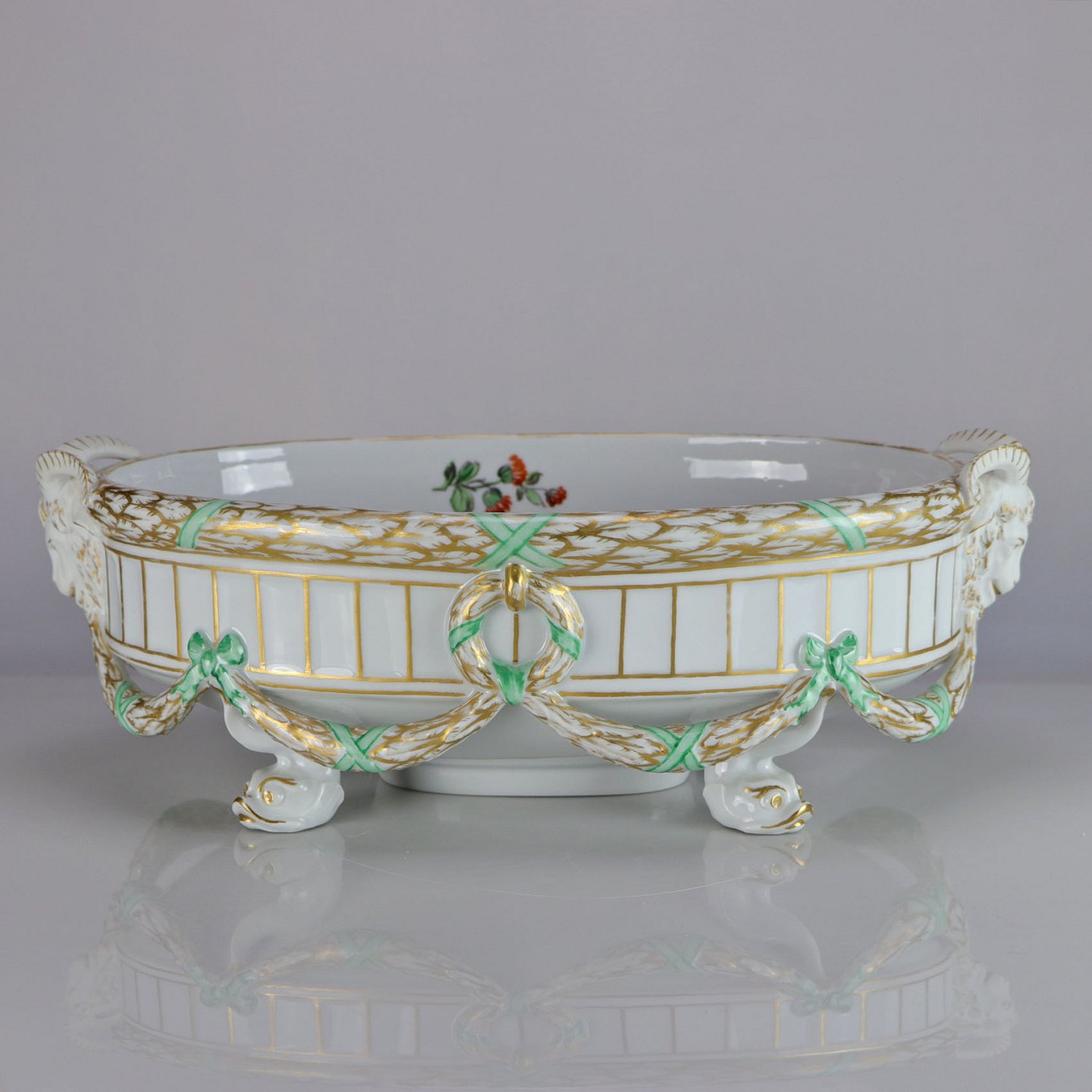 Centerpiece fra Royal Copenhagen. Håndmalet guldkant og vædder hoveder.