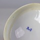 Skål med låg og hanke i hvidt porcelæn med skelform og motiv af guirlander med blå blomster samt blå søhest