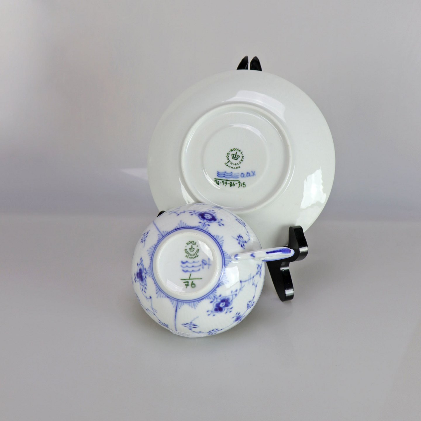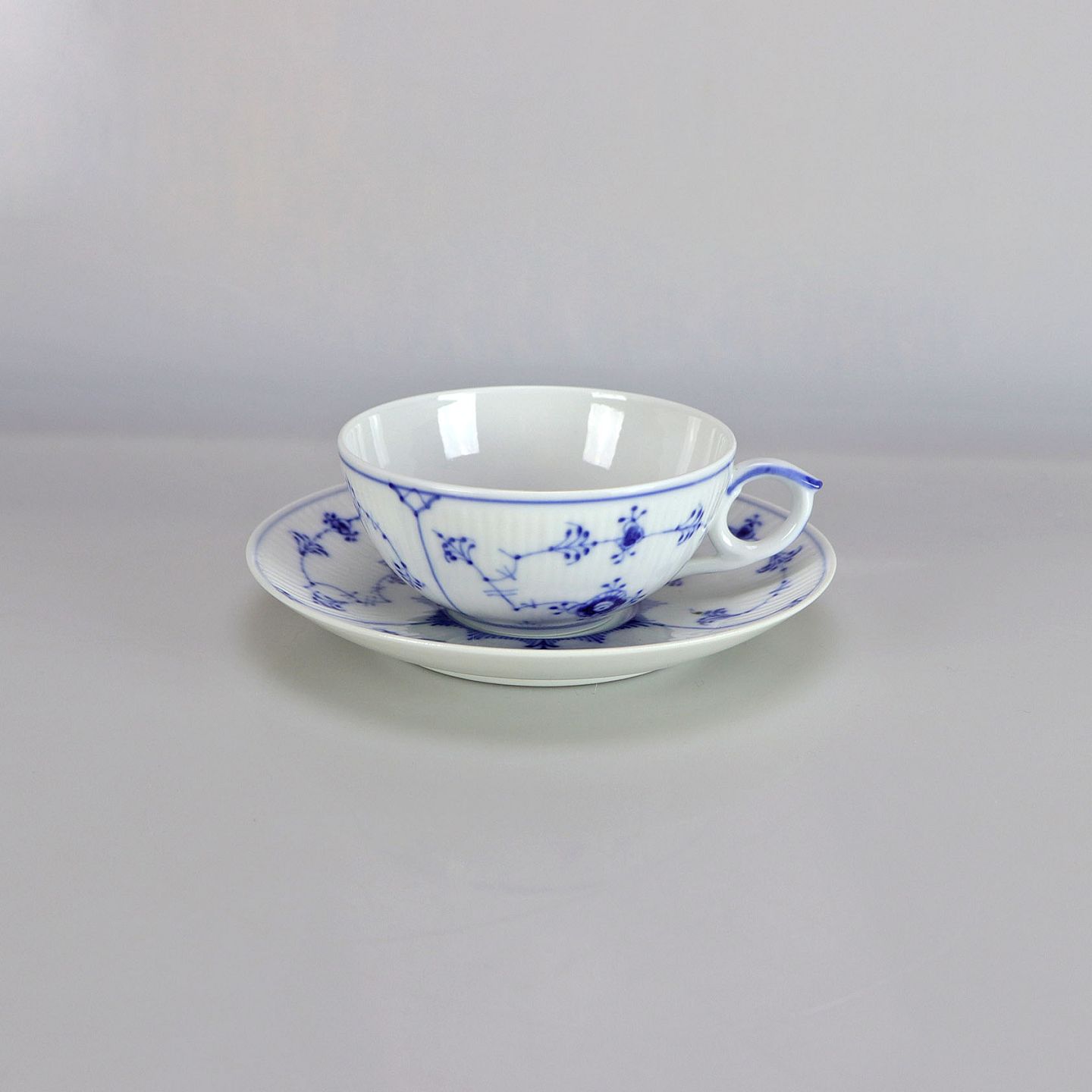 Royal Copenhagen kop med underkop Musselmalet Riflet