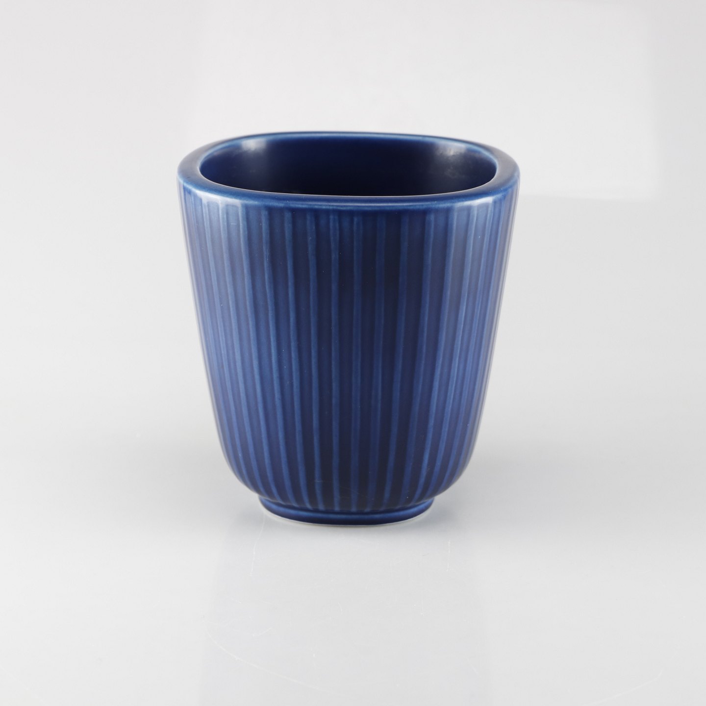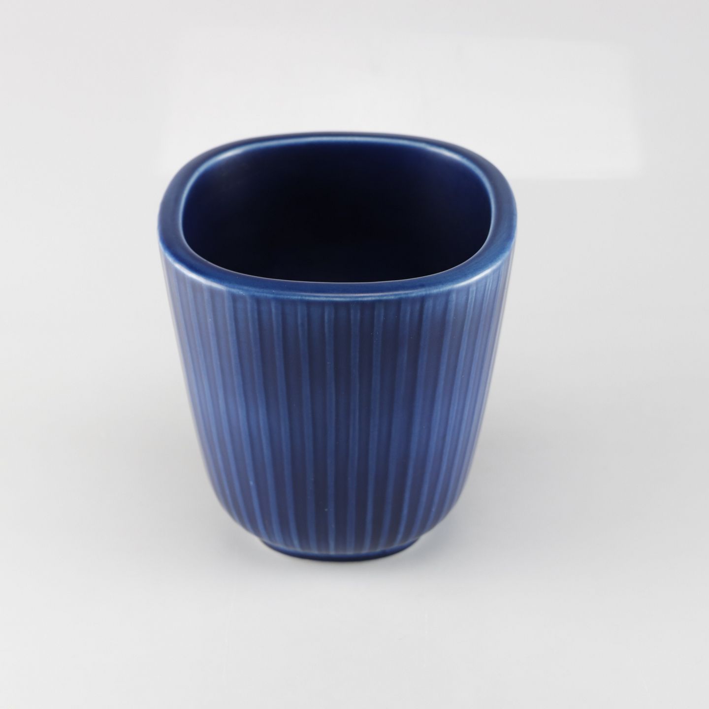 Kvadratisk Marselis vase i blå fajance med rillet mønster