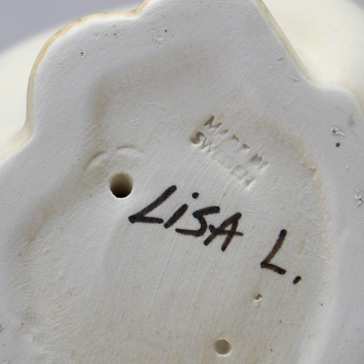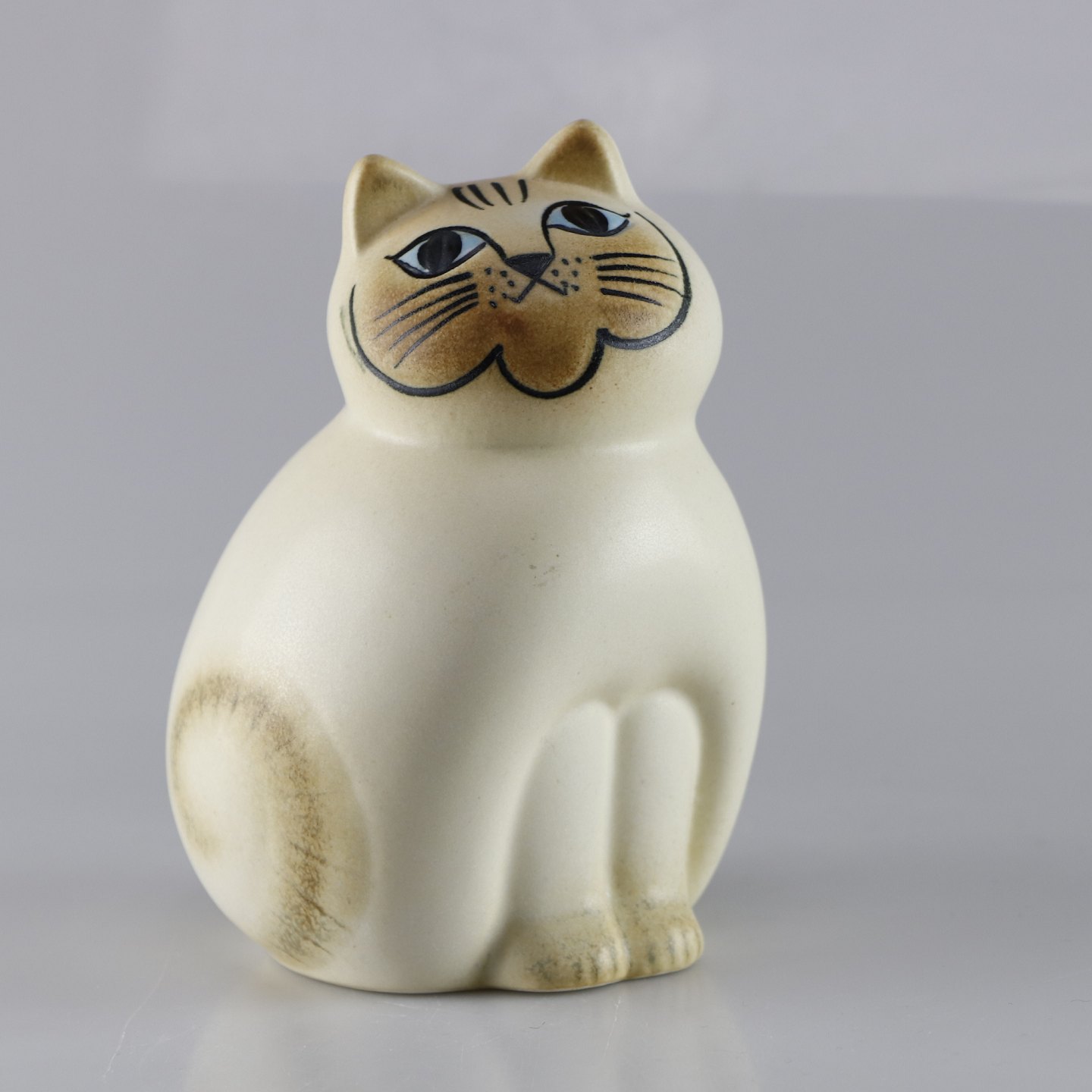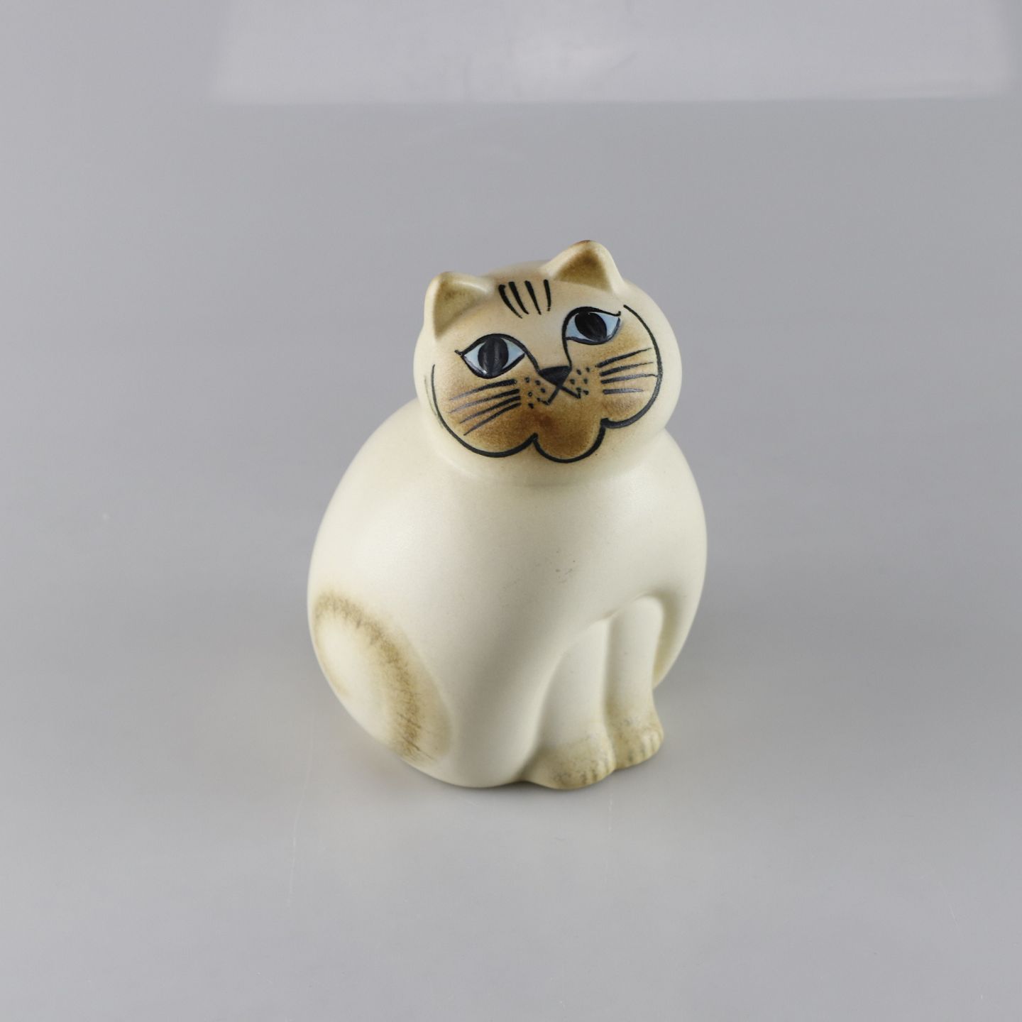 Figur i stentøj med motiv af lys kat model Mia fra år 2010