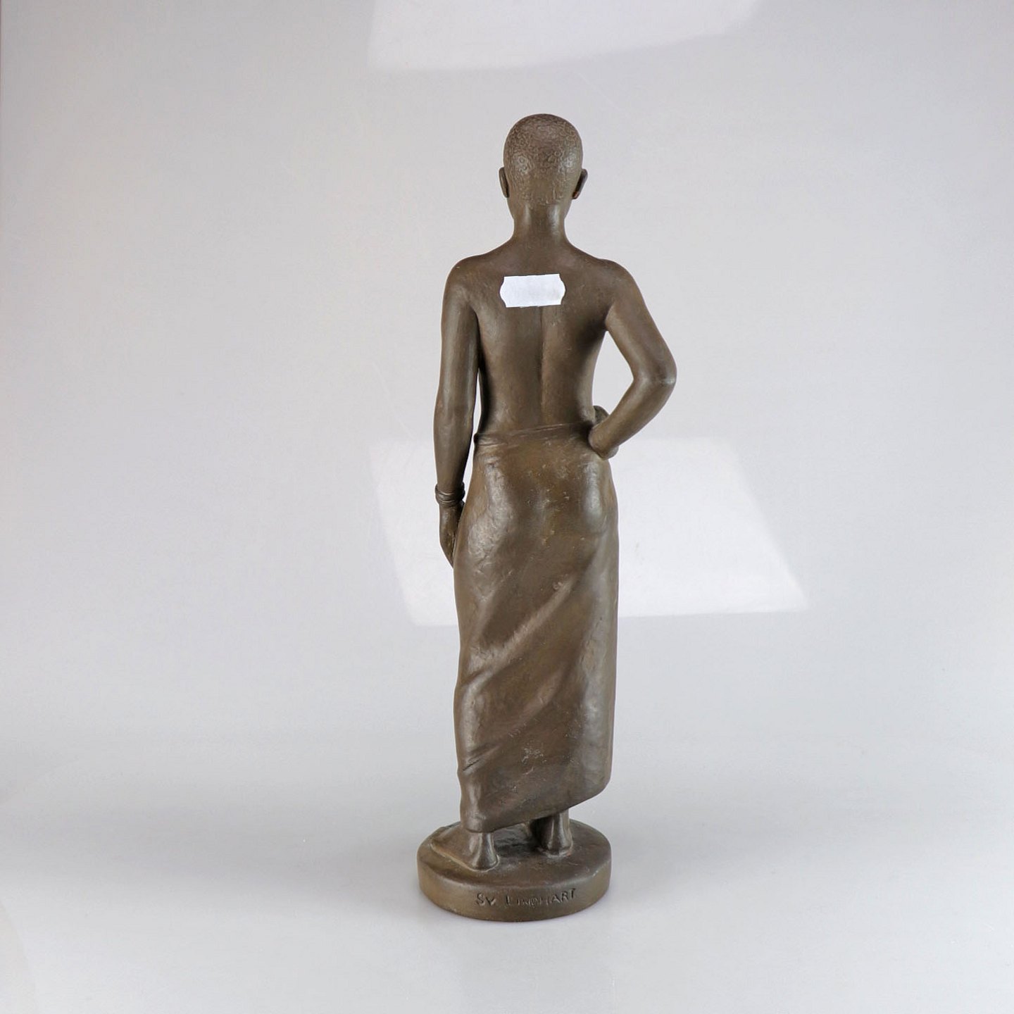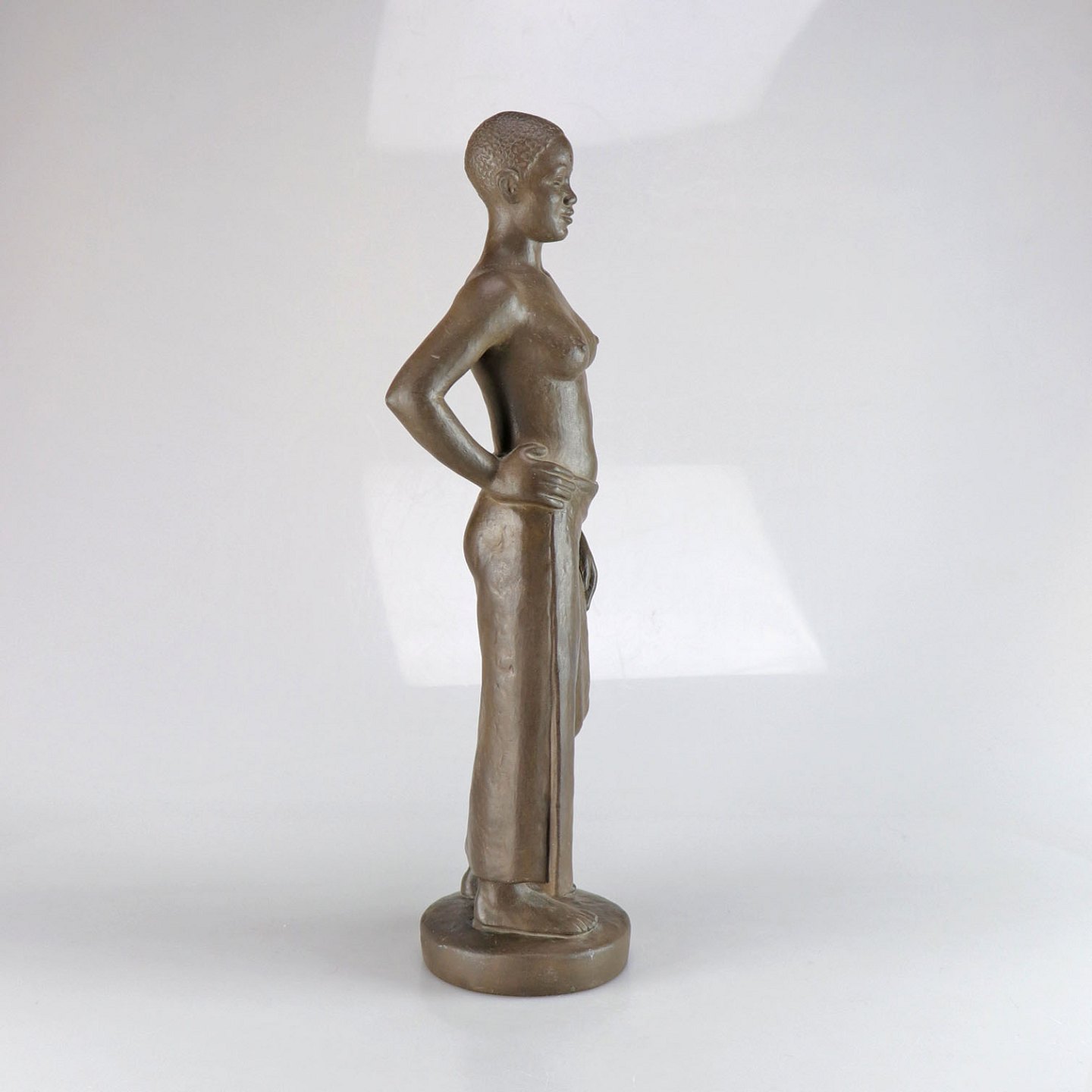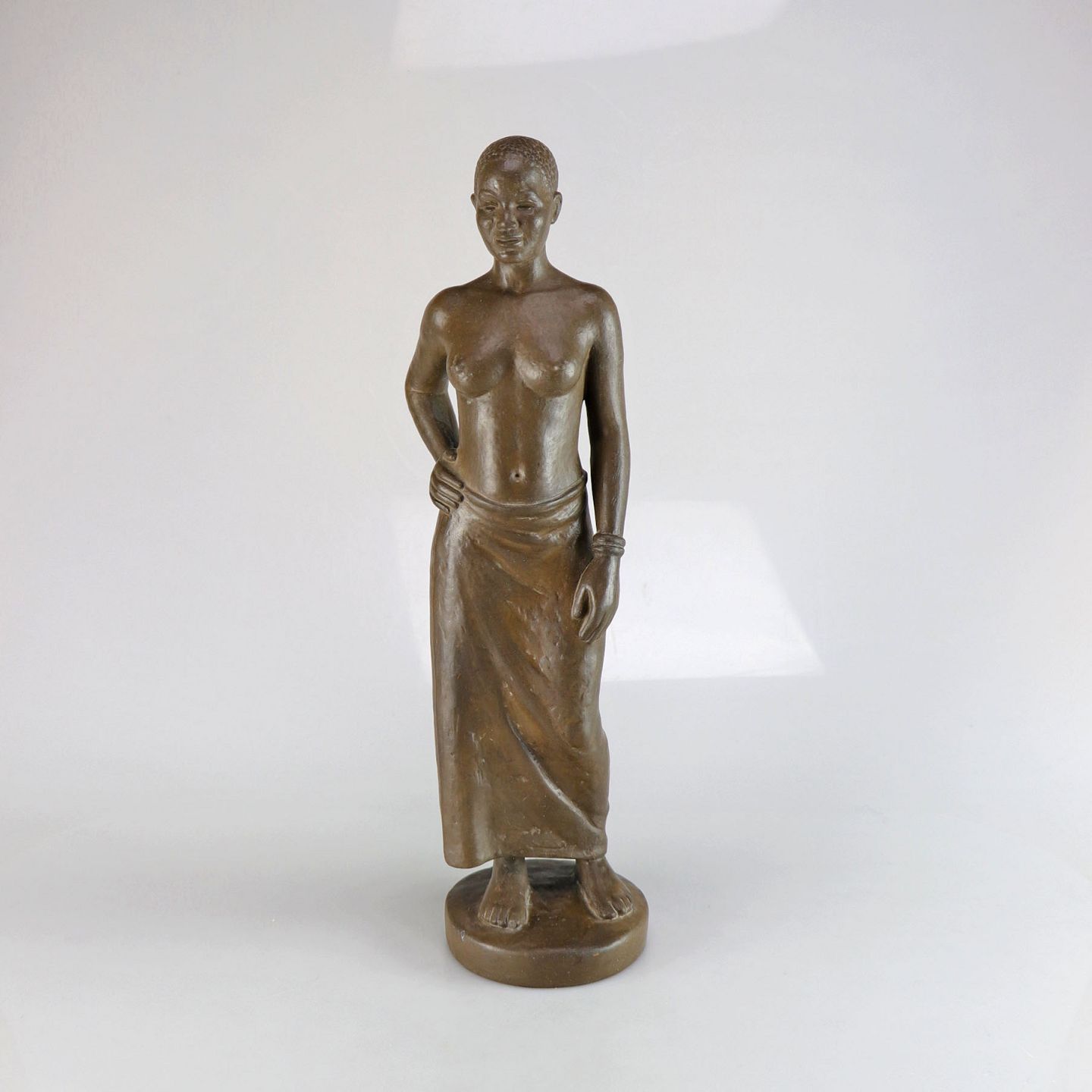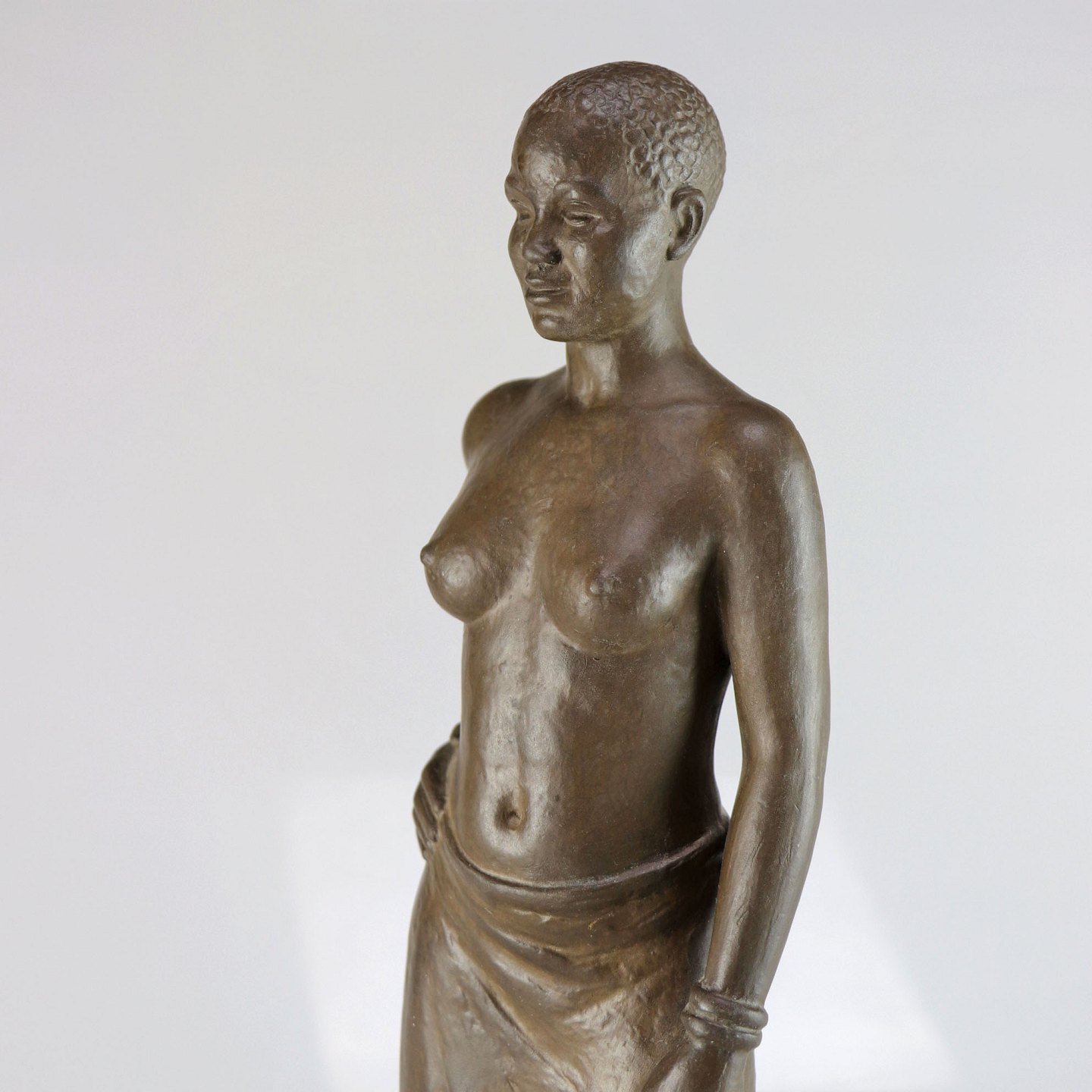 Detaljeret keramikfigur af kvinde i lændeklæde