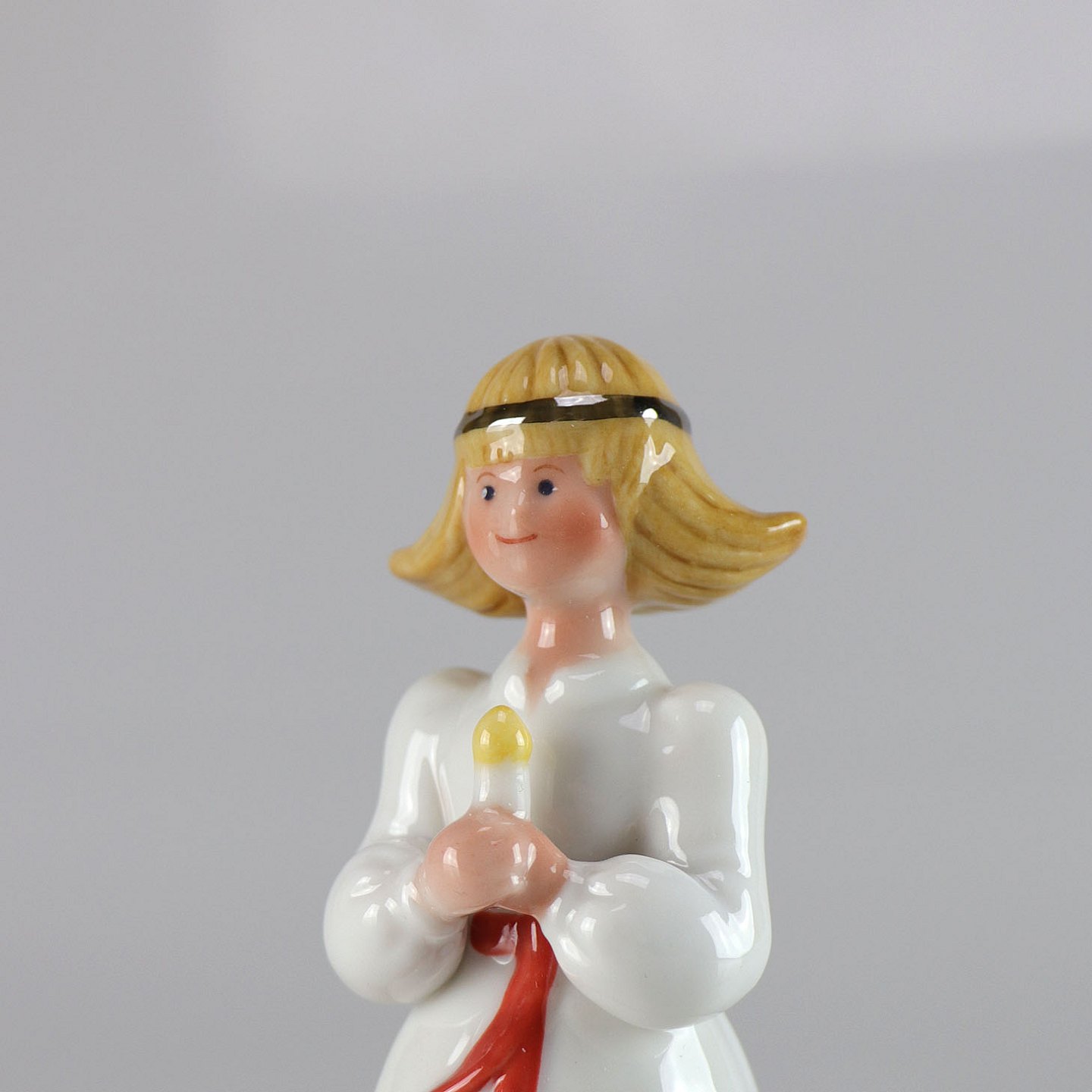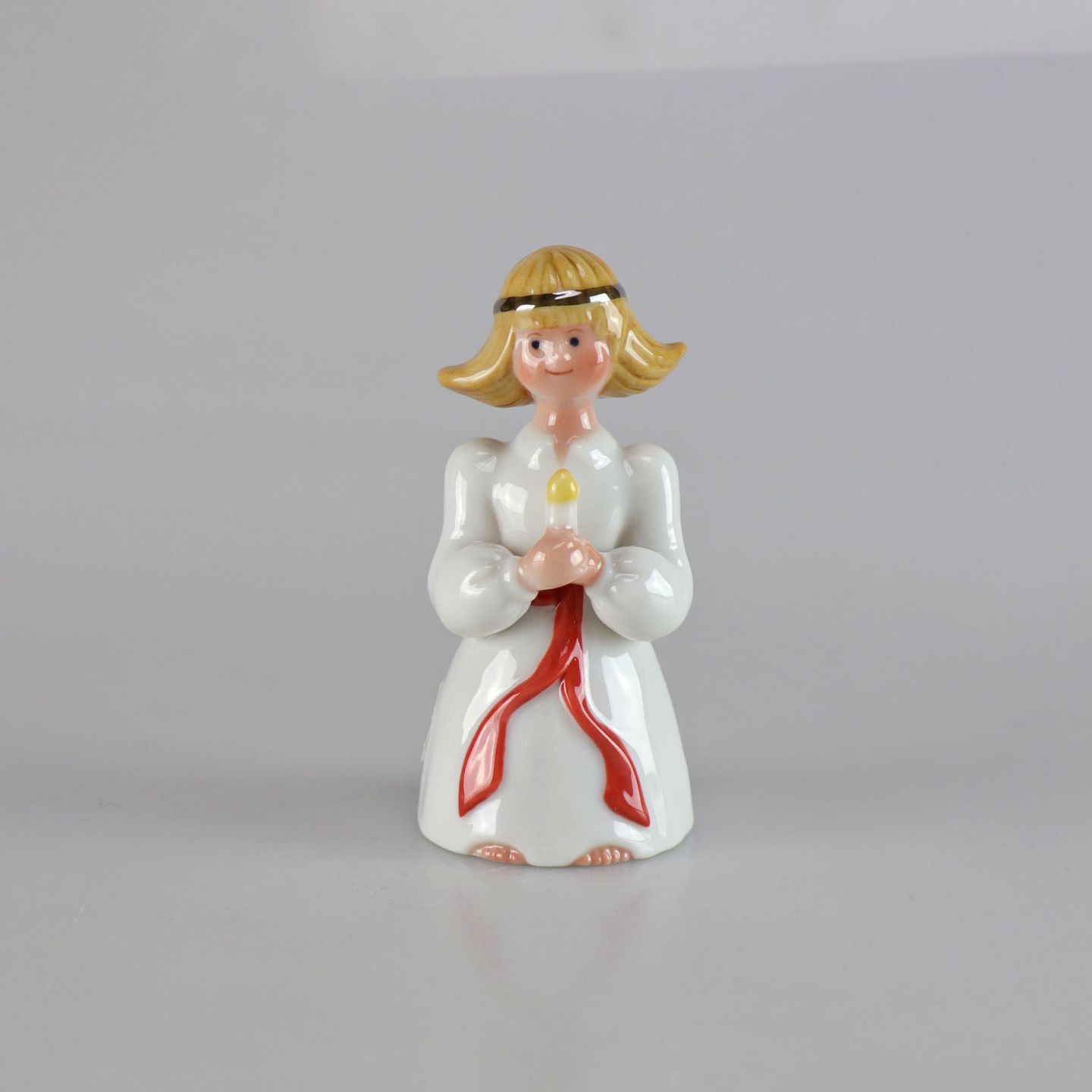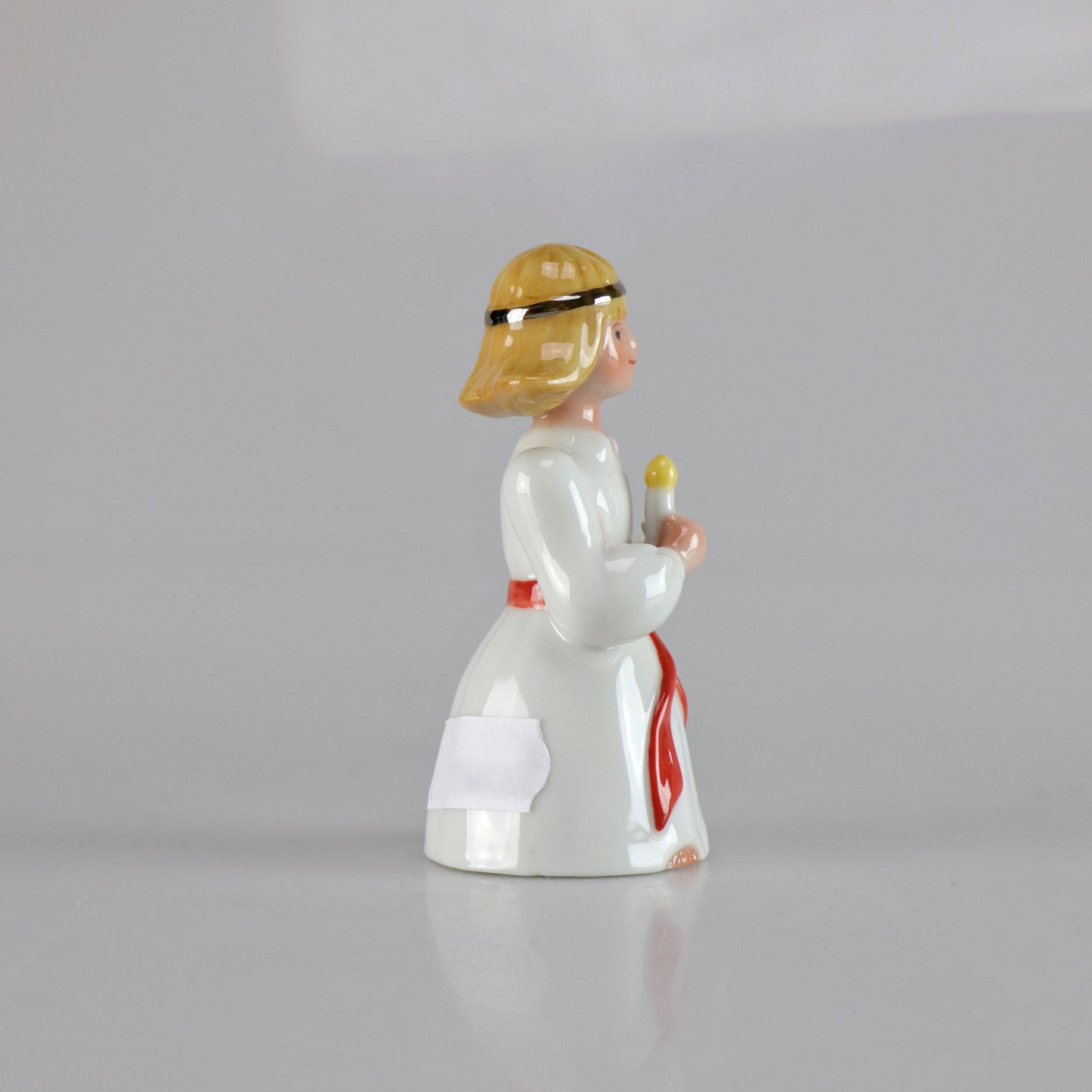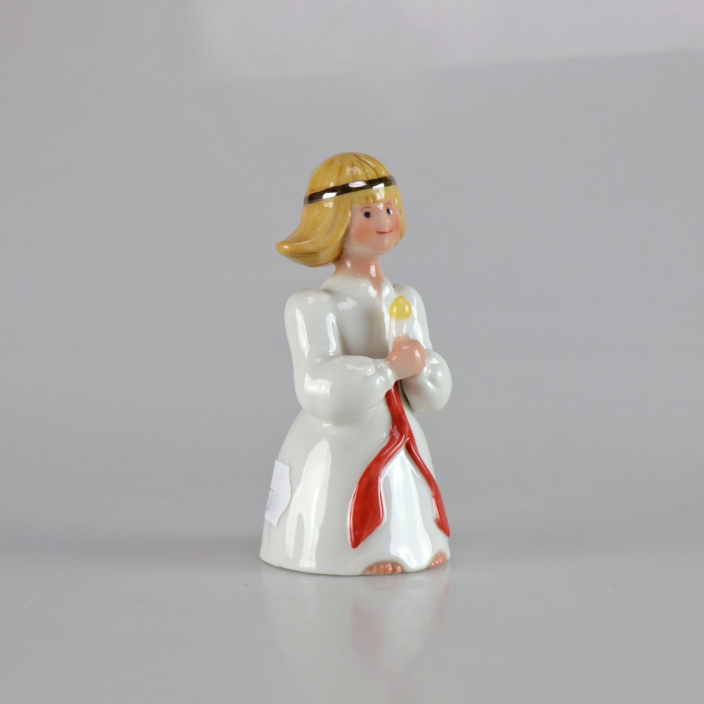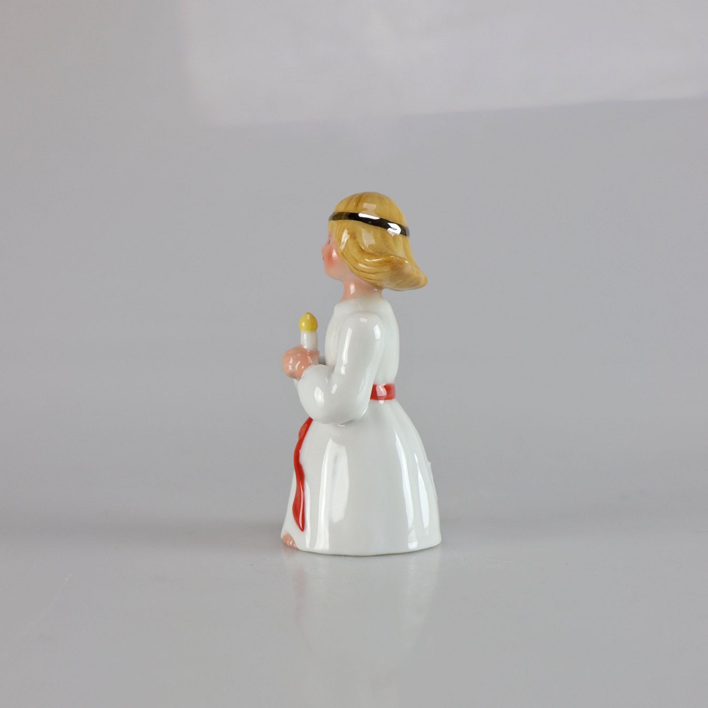 Kongelig porcelænsfigur af pige med hårbånd og tændt lys i hånden