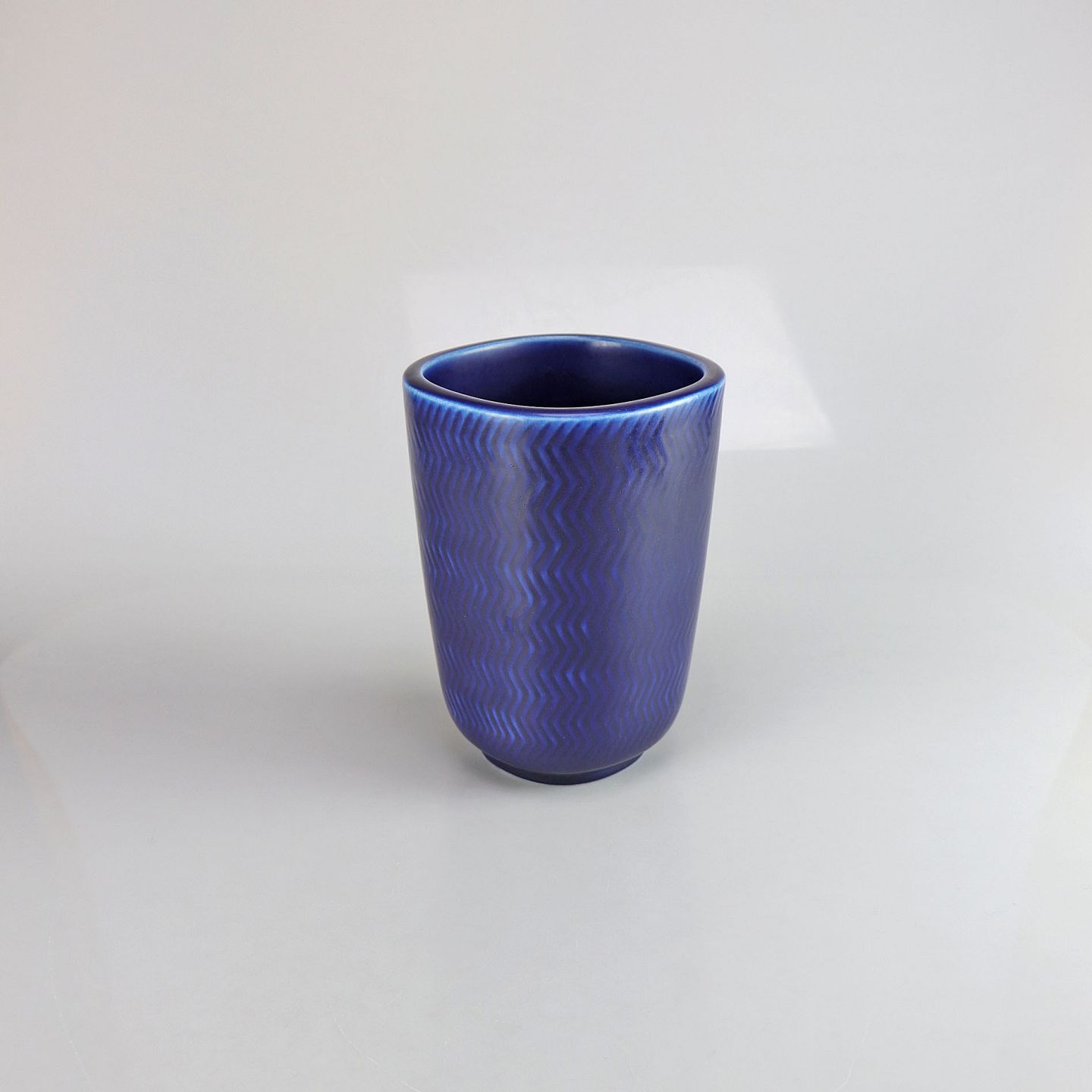 Firkantet fajancevase med bølgemønster