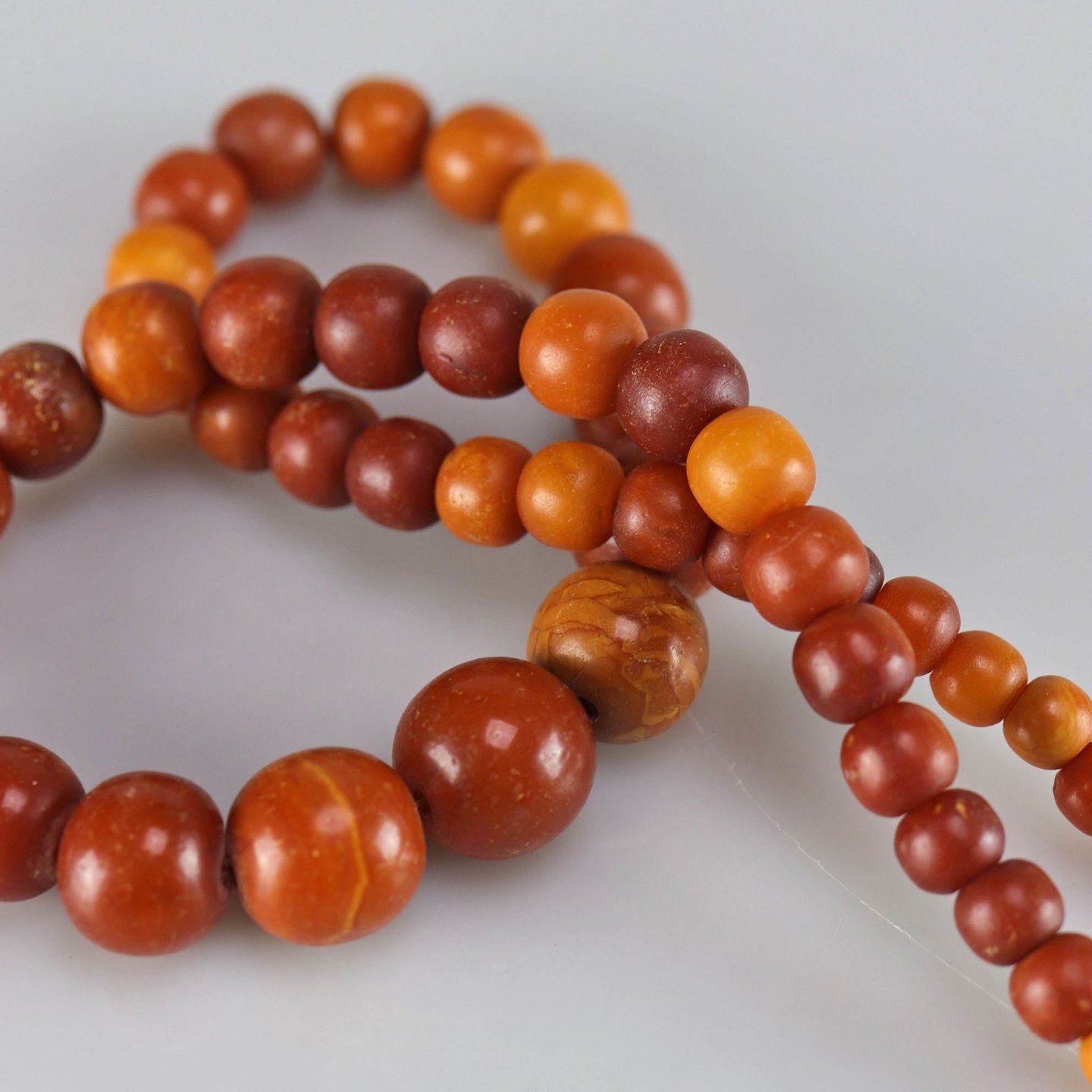 Glatslebet rav i varierende størrelser påsat kæde