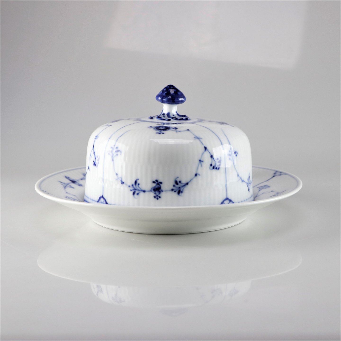 Kongelig Musselmalet riflet smørskål med fast underskål no 1/5