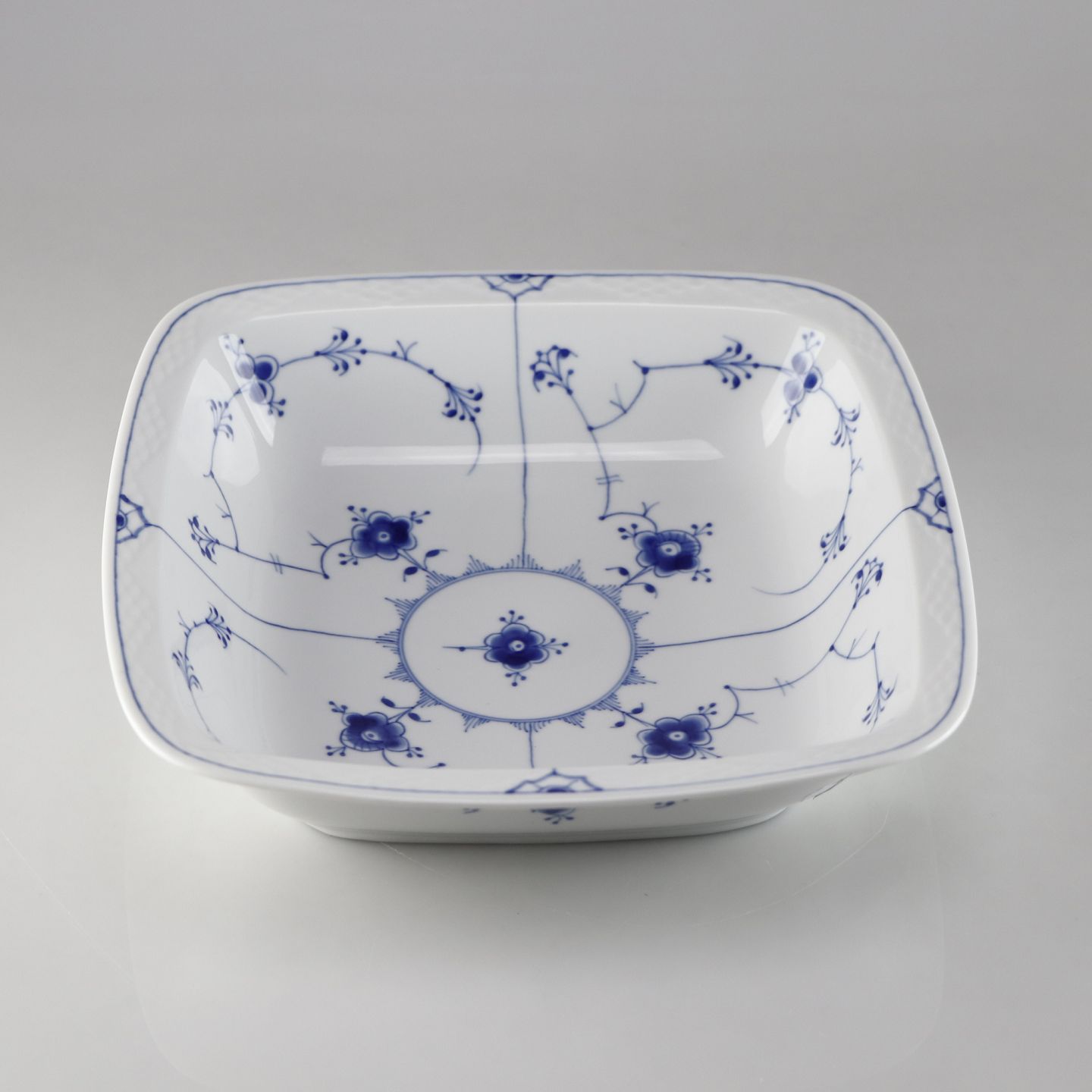 Kvadratisk skål i porcelæn fra stellet Blåmalet no. 230