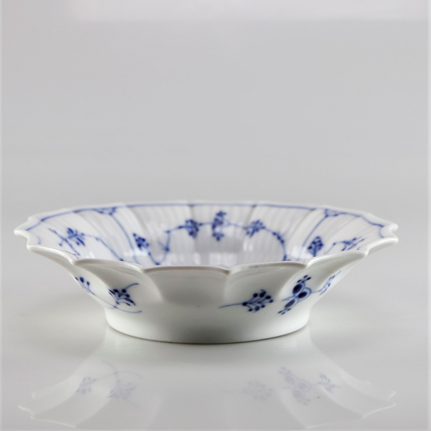 Kongelig musselmalet riflet skål no 1/141 med kantet sider
