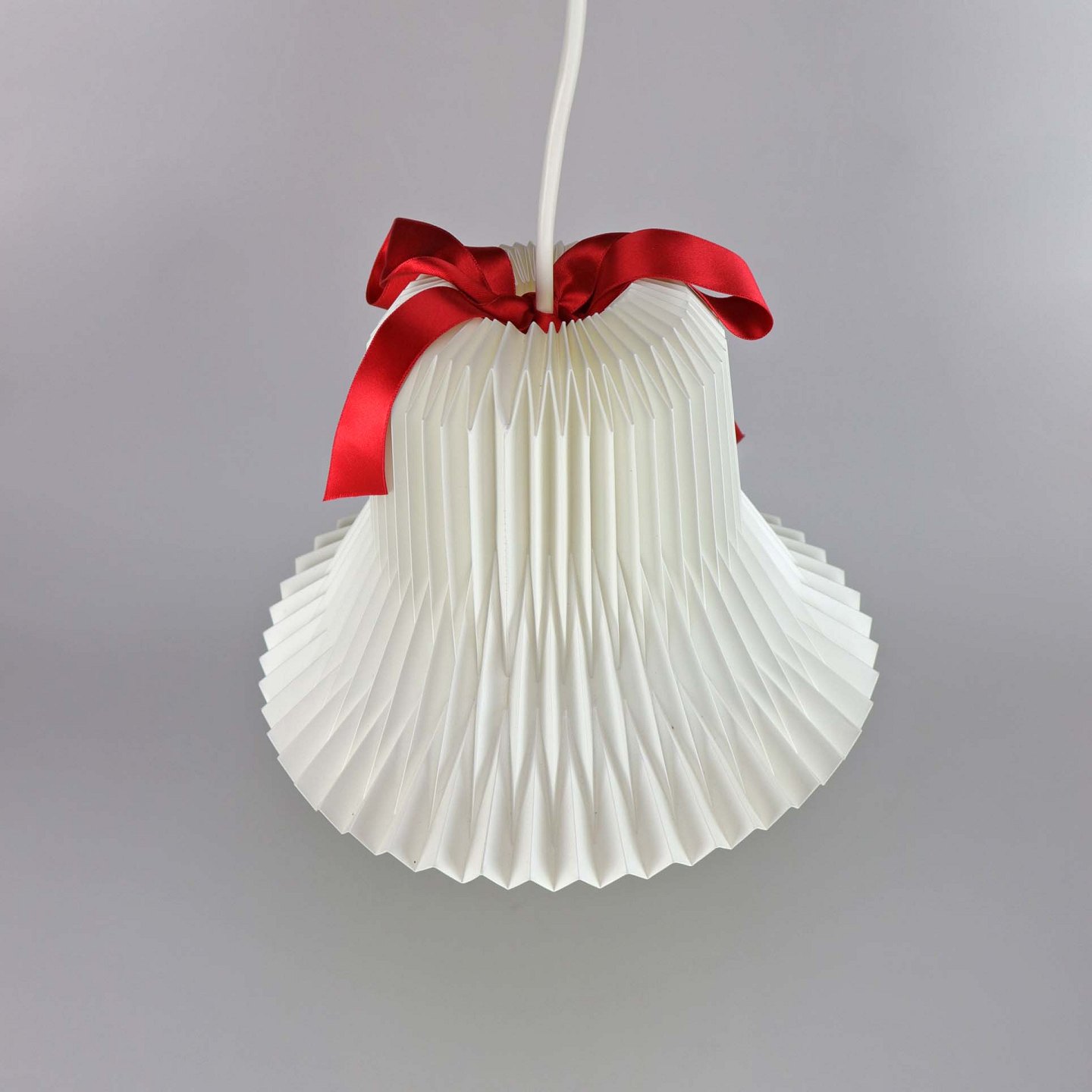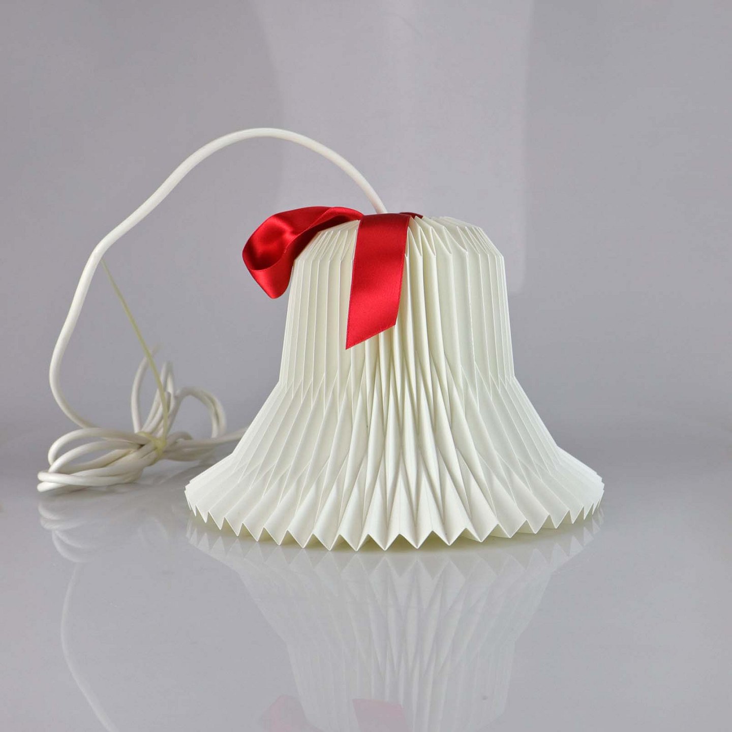 Hvid plisseret plast med aftagelig rød sløjfe