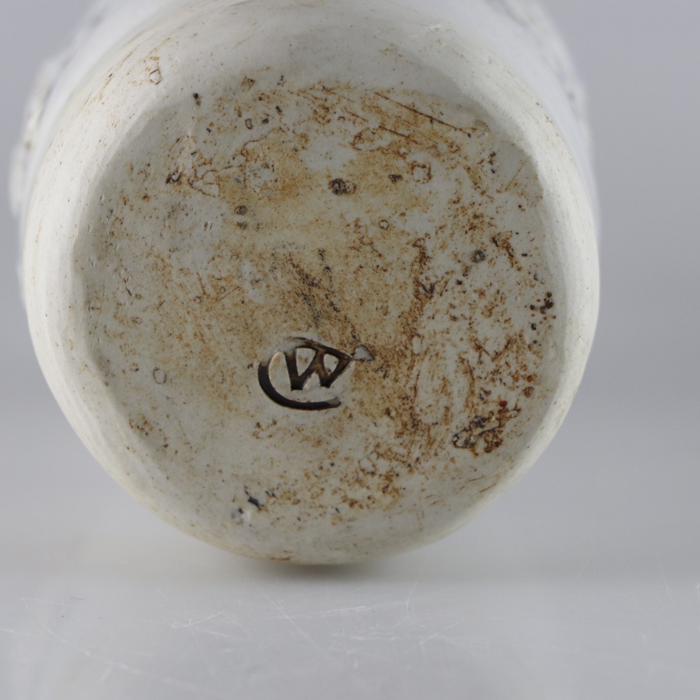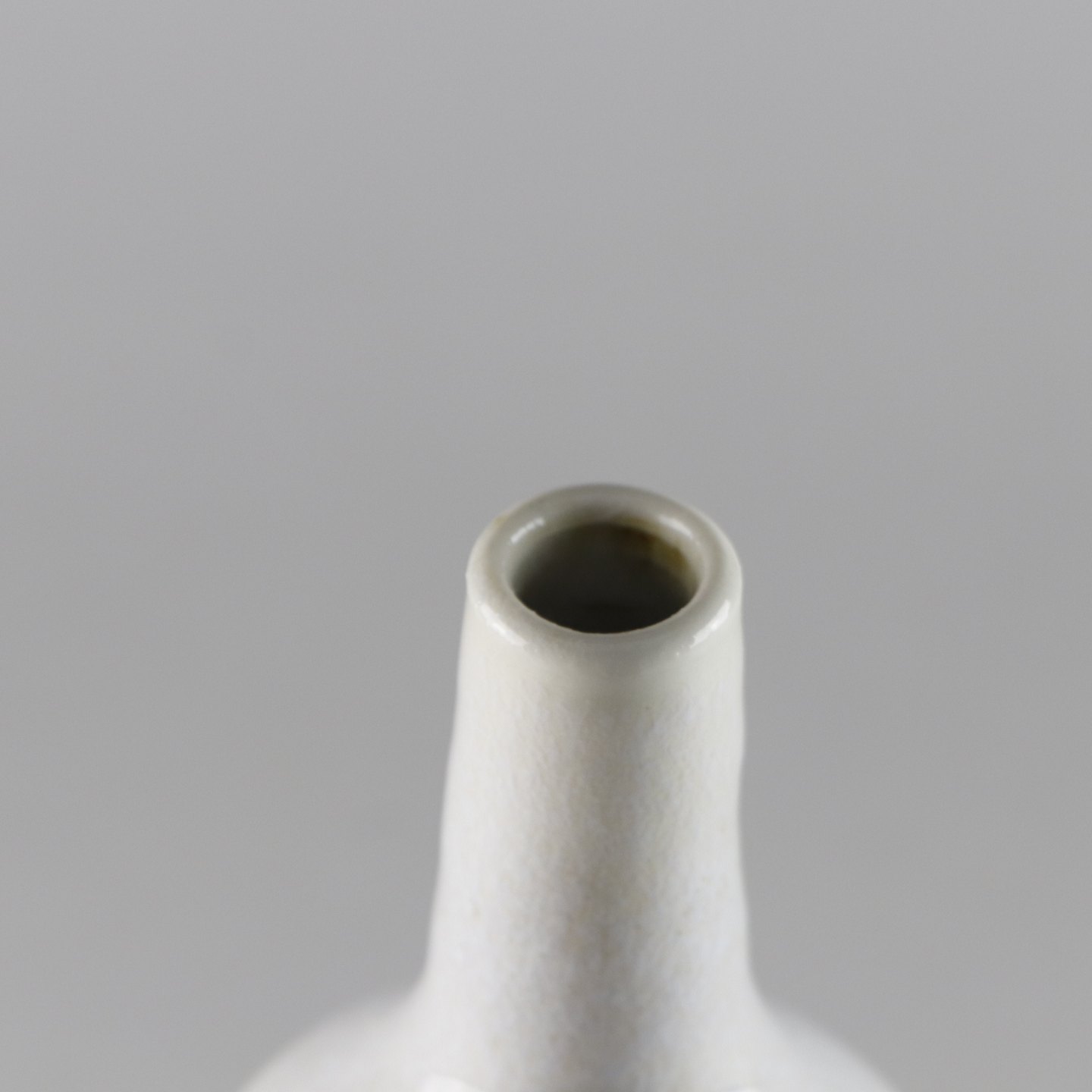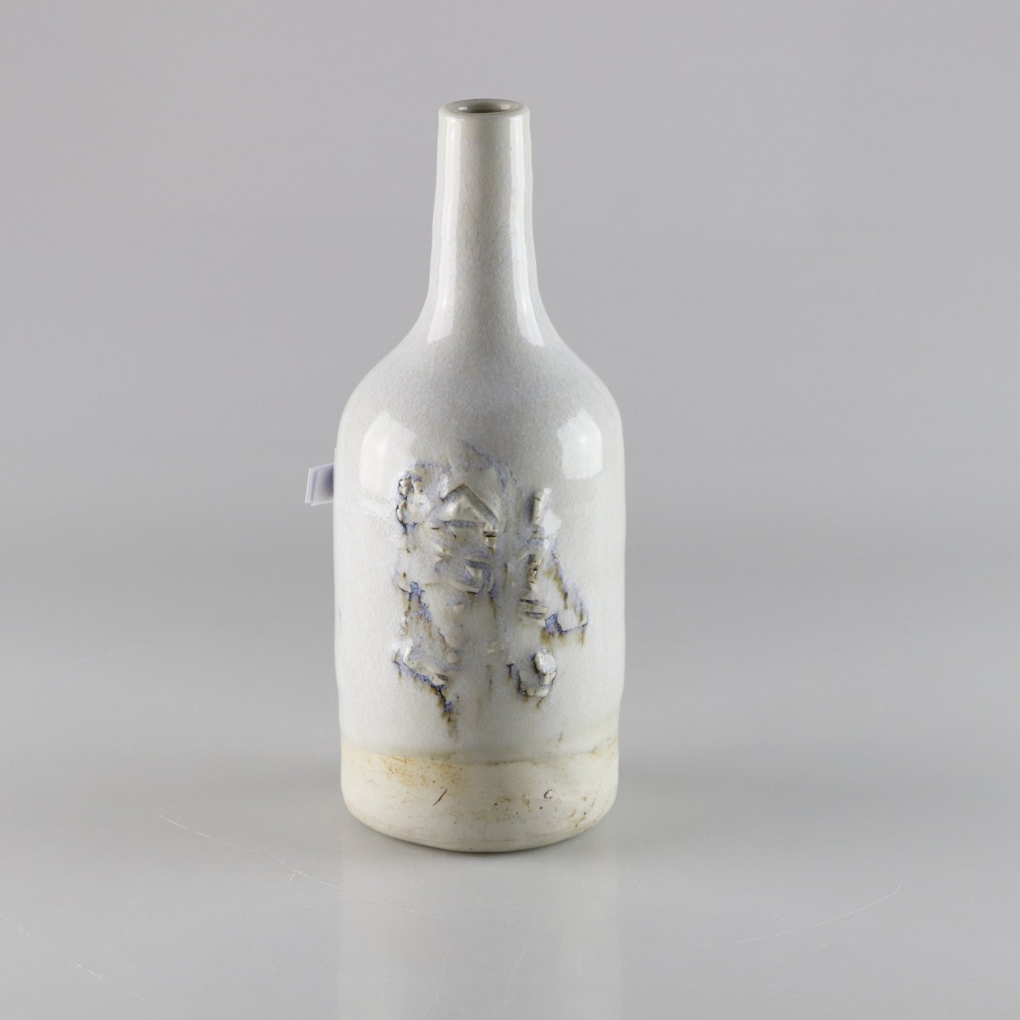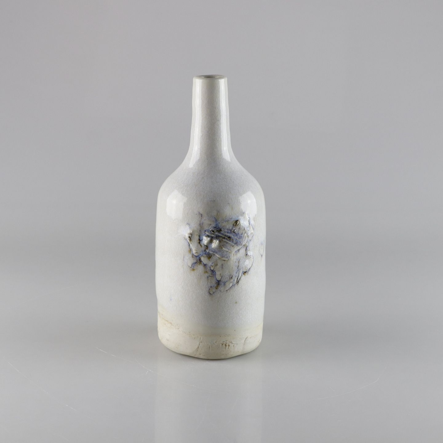 Flaskeformet vase i stentøj med hvid glasur med abstrakt mønster