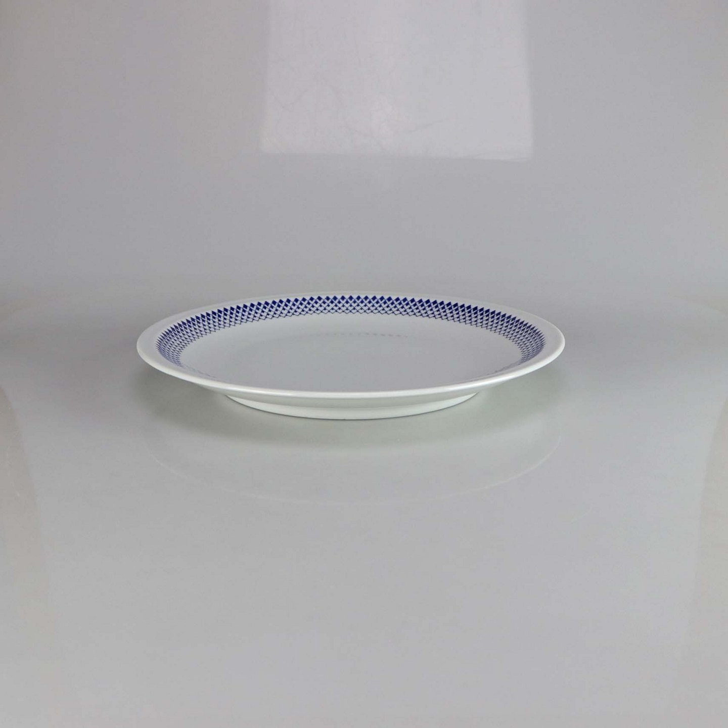 Glat hvidt porcelæn med mørkeblå rombe dekoration