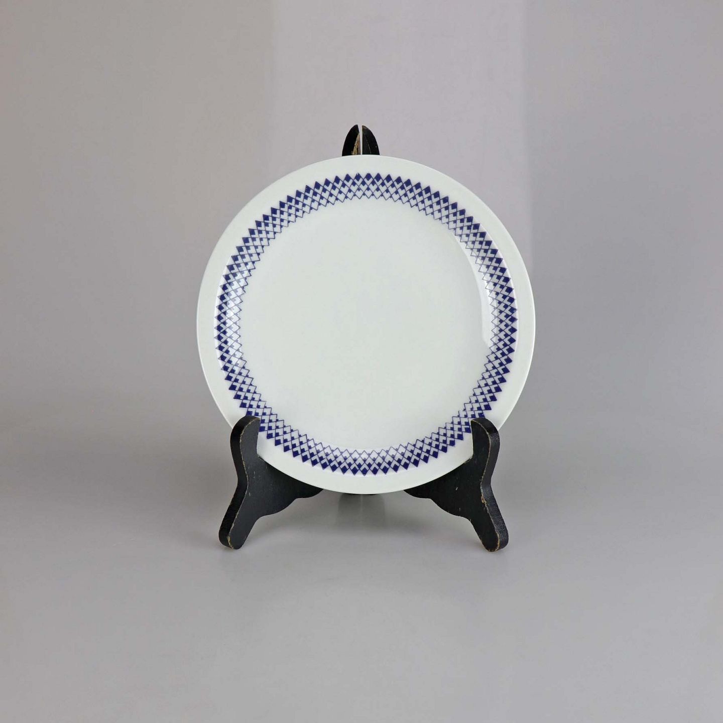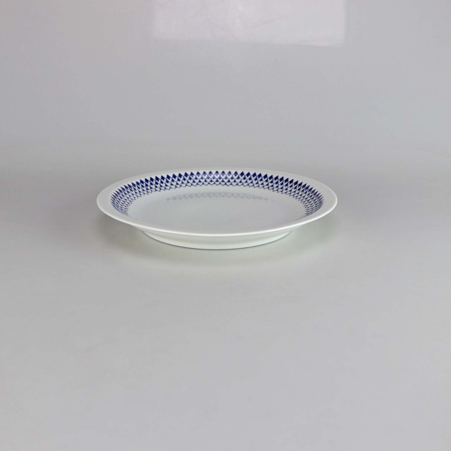 Glat hvidt porcelæn med mørkeblå rombe dekoration