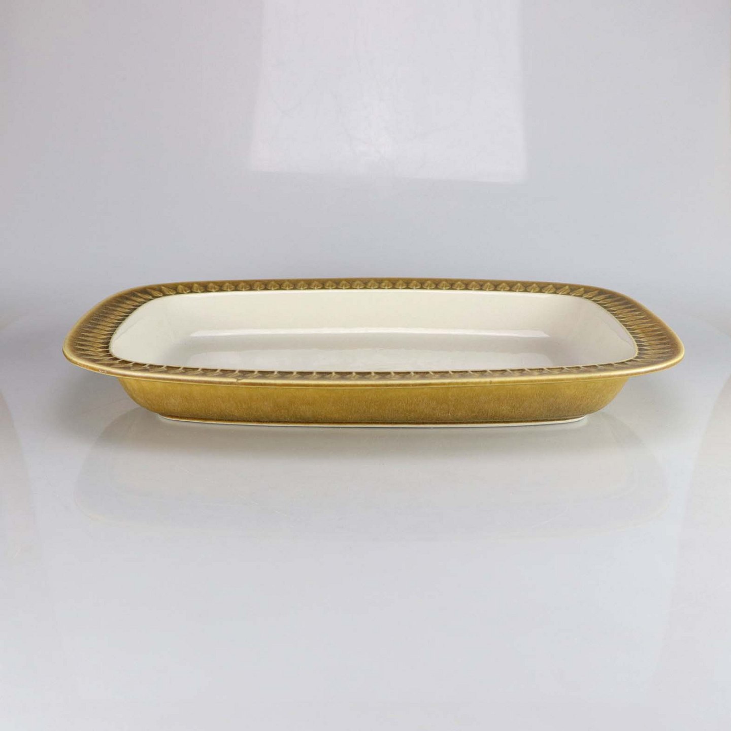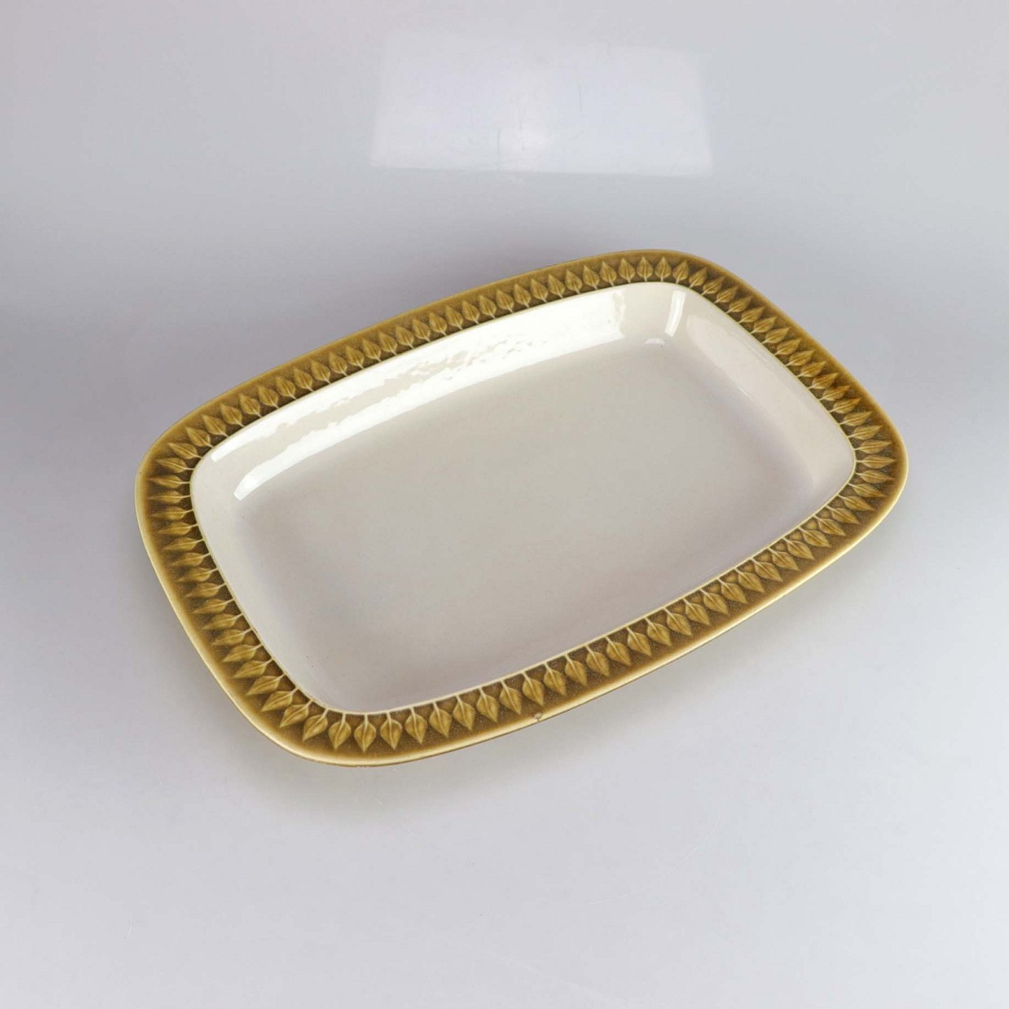 Aflangt serveringsfad i stentøj fra stellet Relief