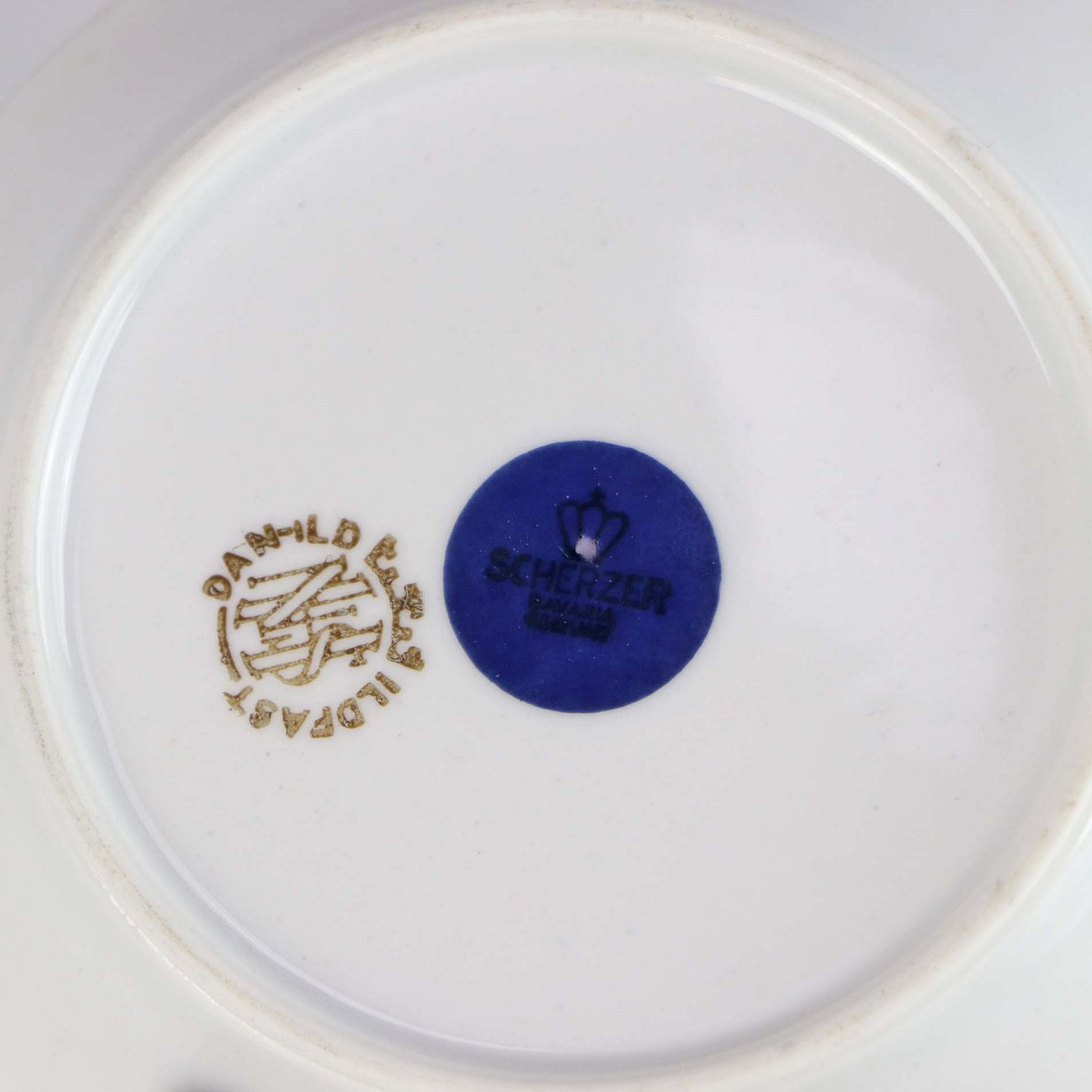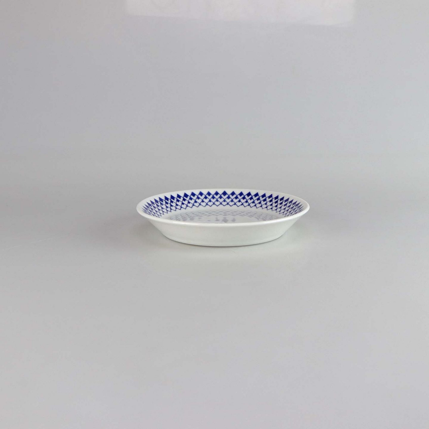 Ildfast glas hvidt porcelæn med dekoration af mørkeblå romber