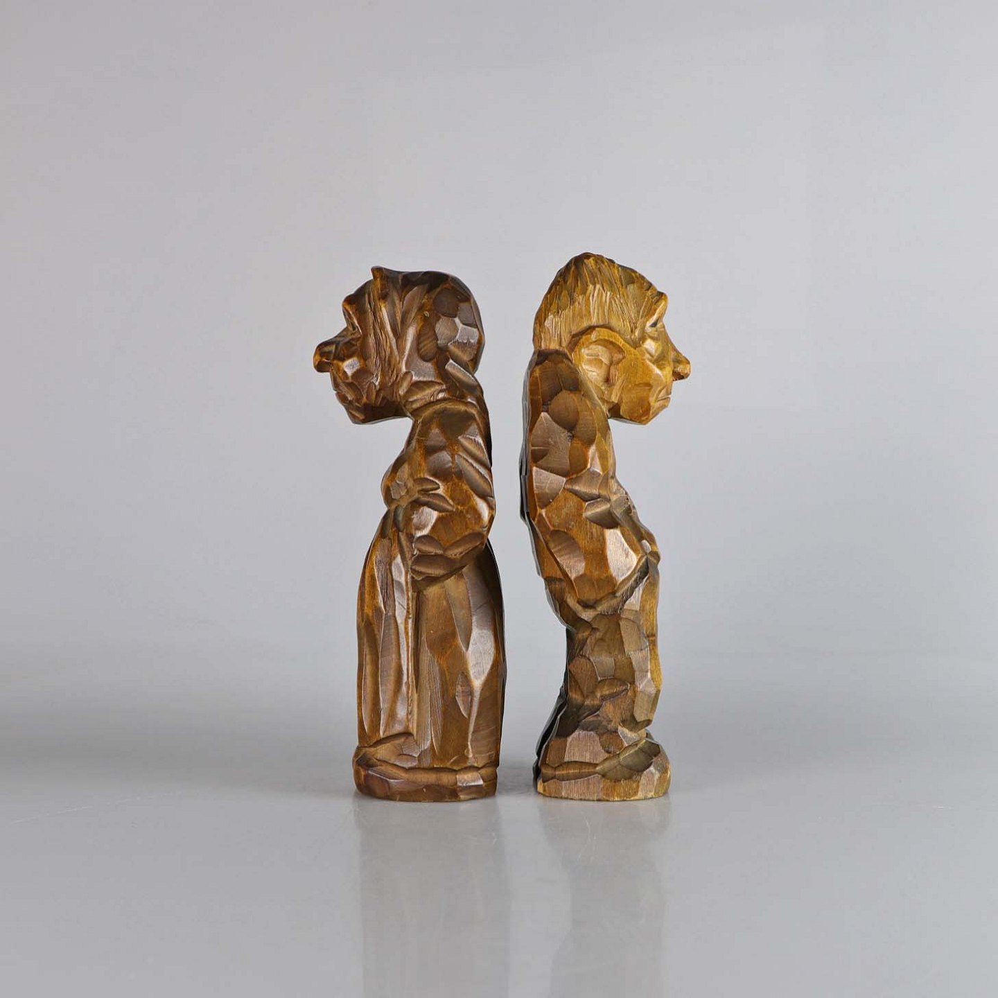 Håndsnittet Dam figur i træ som forestiller en kvinde og en mand