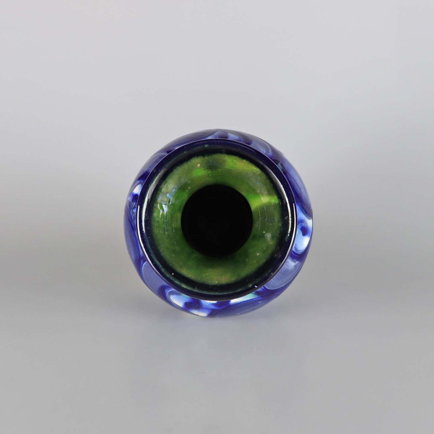 Vase med hvidt glasur og blåt abstrakt mønster, grøn glasur indvendigt
