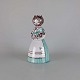 Stage af kvinde med kjole i grøn, hvid og brune farver