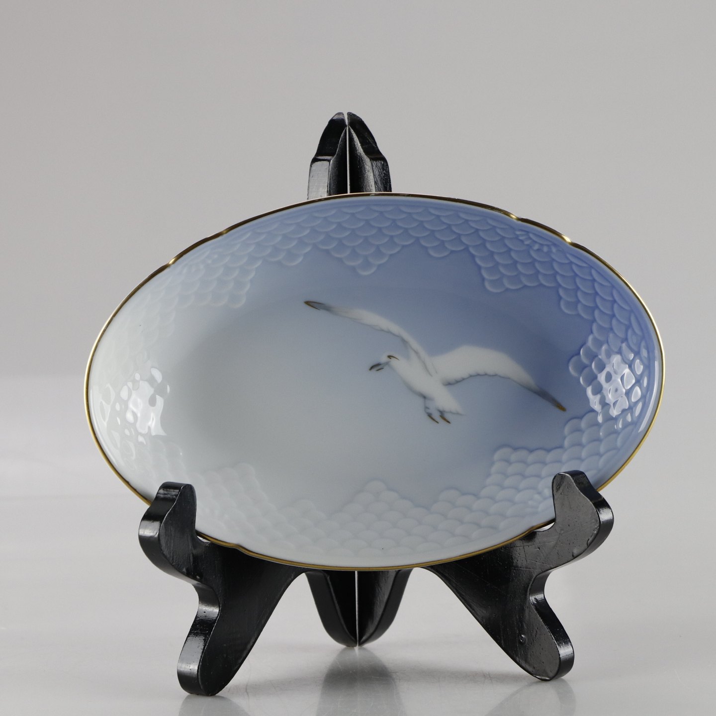 Rund asiet i porcelæn fra stellet Mågestel med guldkant no 38