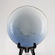 Porcelænsskål i hvid og gradueret blå nuancer med guldkant og dekoration af måge