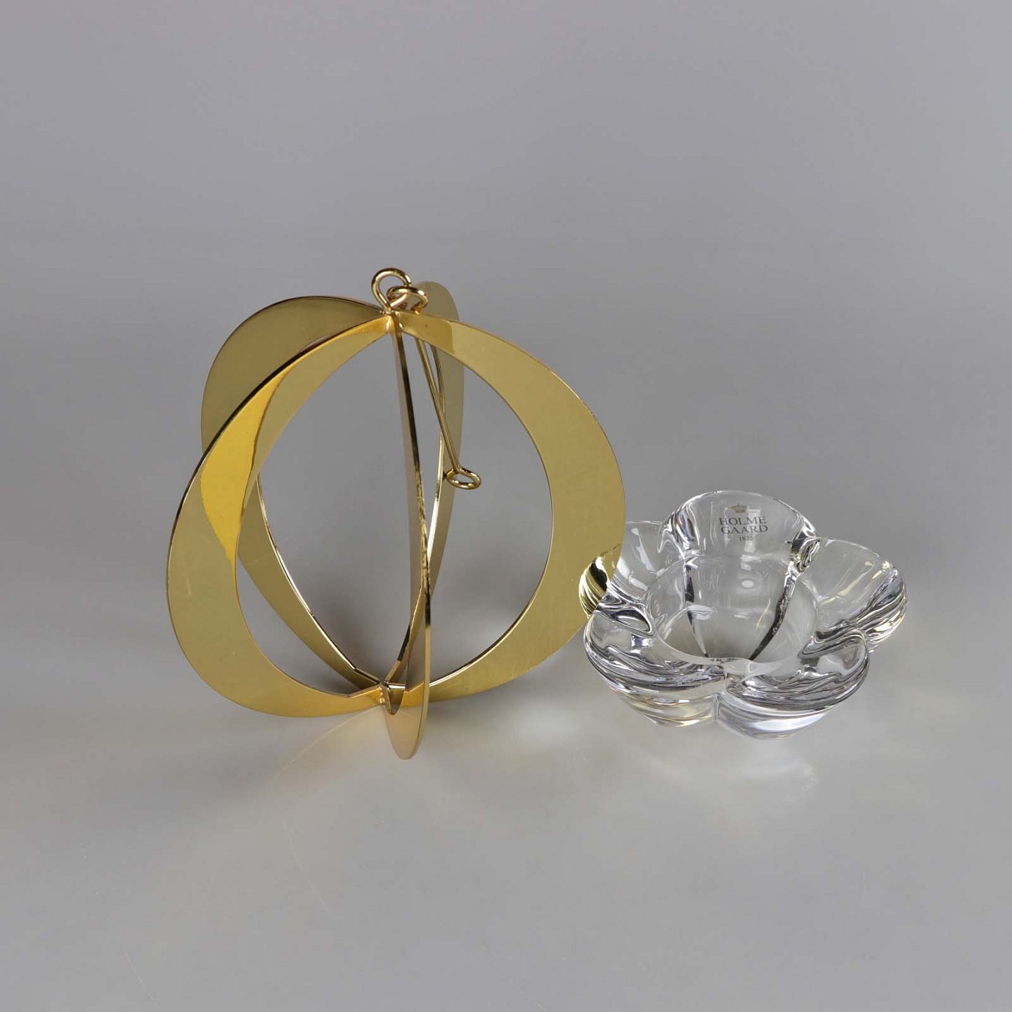 Forgyldt metal med stage til fyrfadslys i klart glas