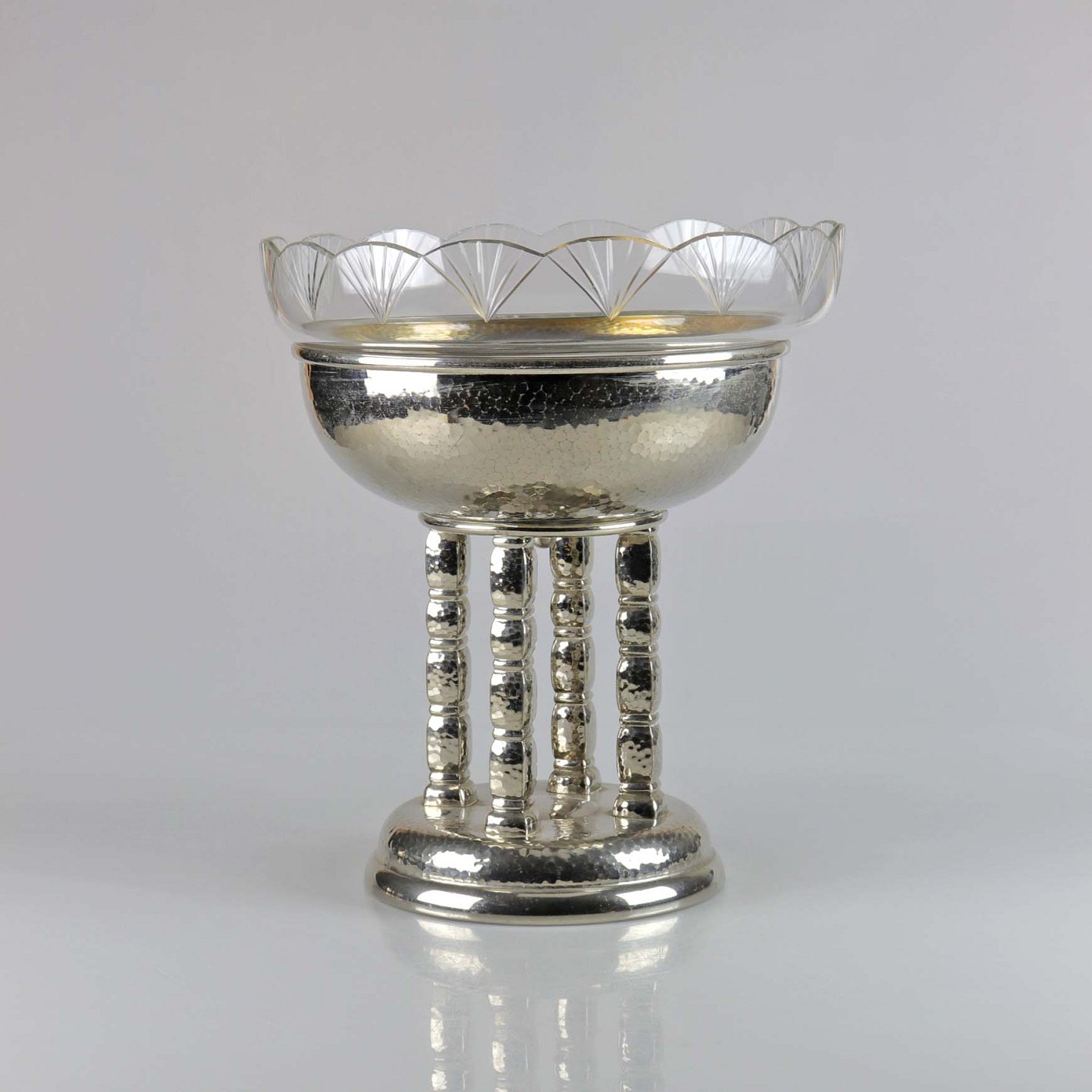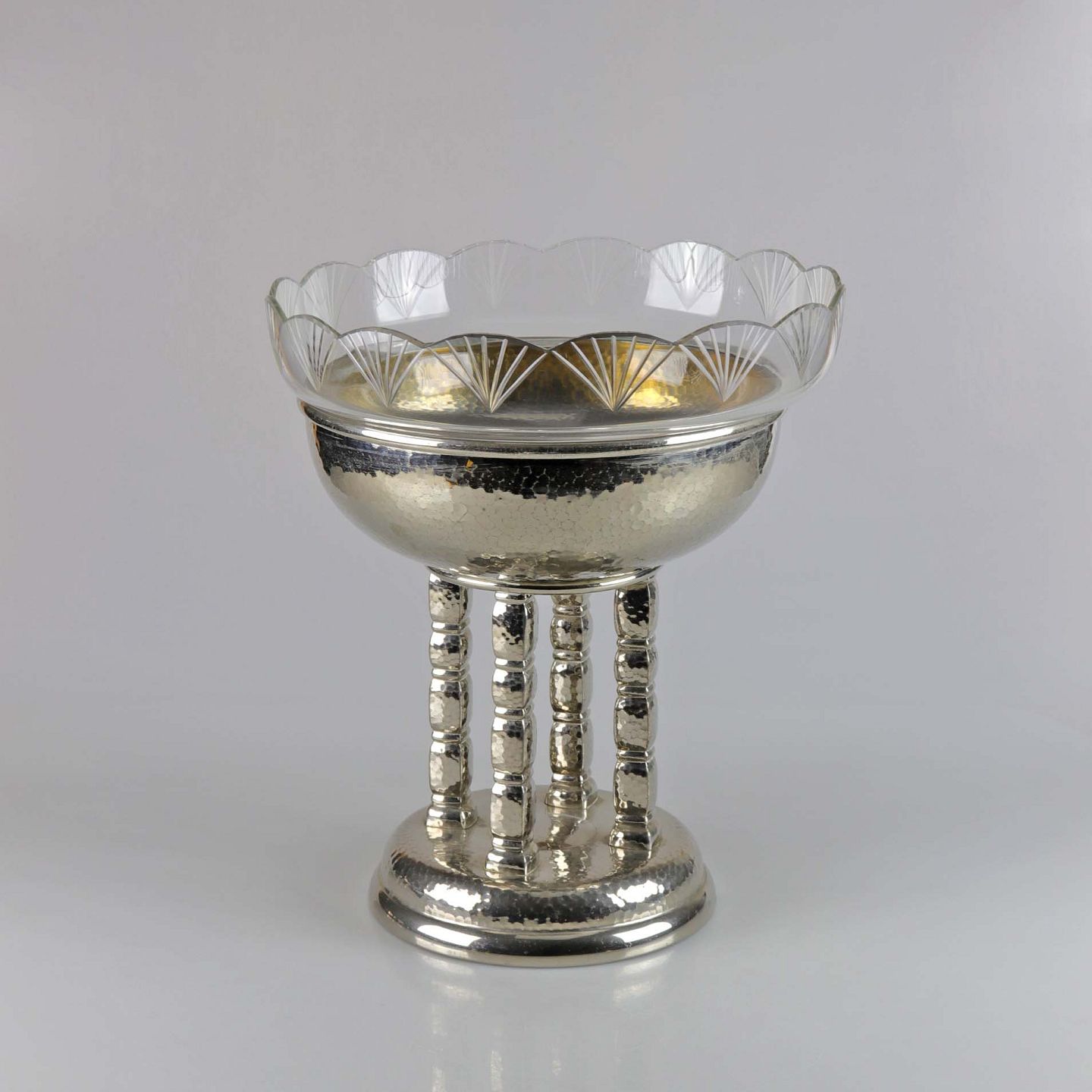Opsats i hamret pletsølv med aftagelig skål i glas