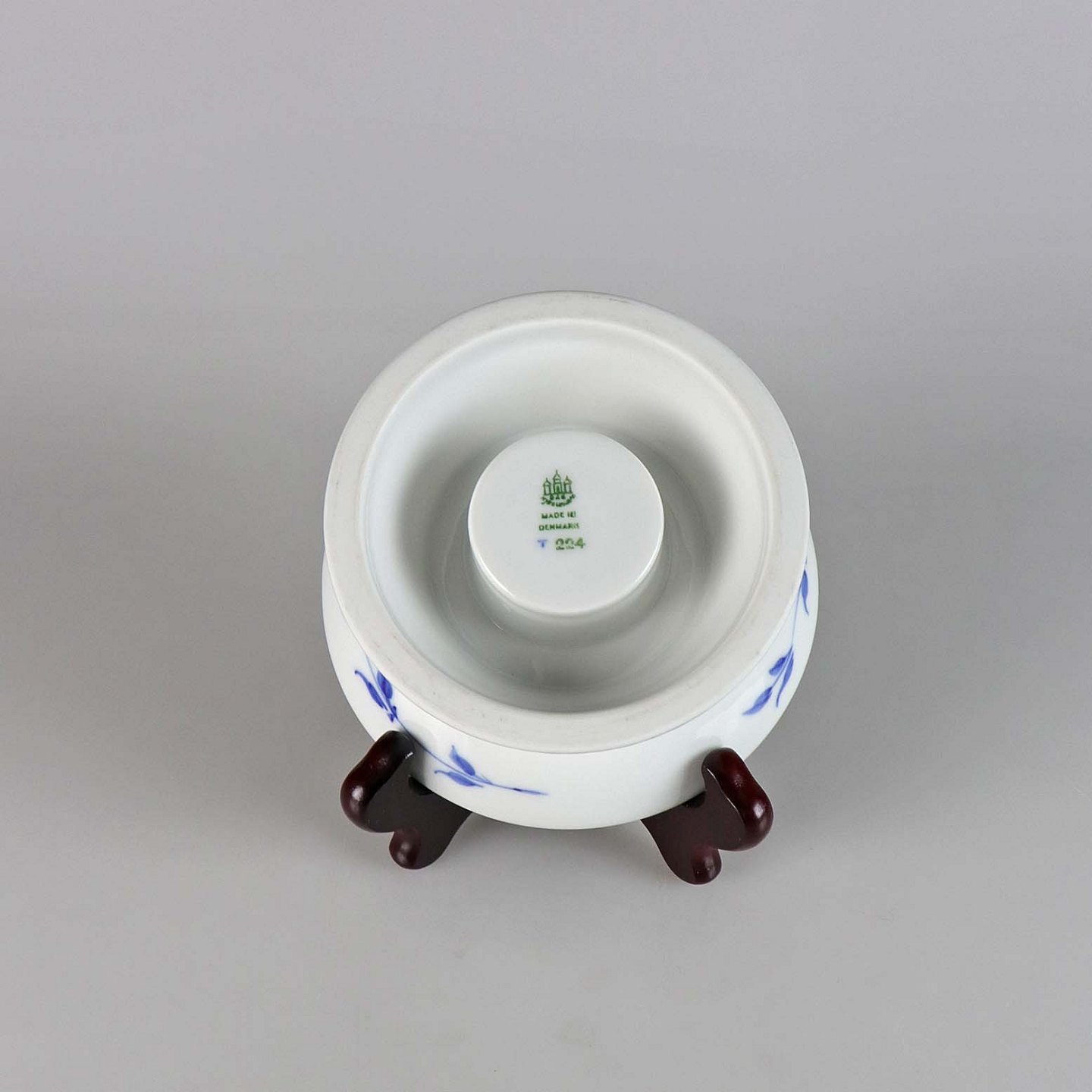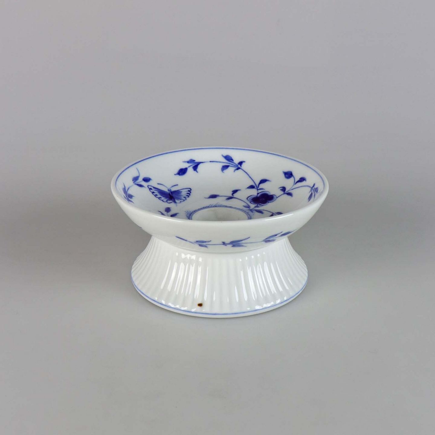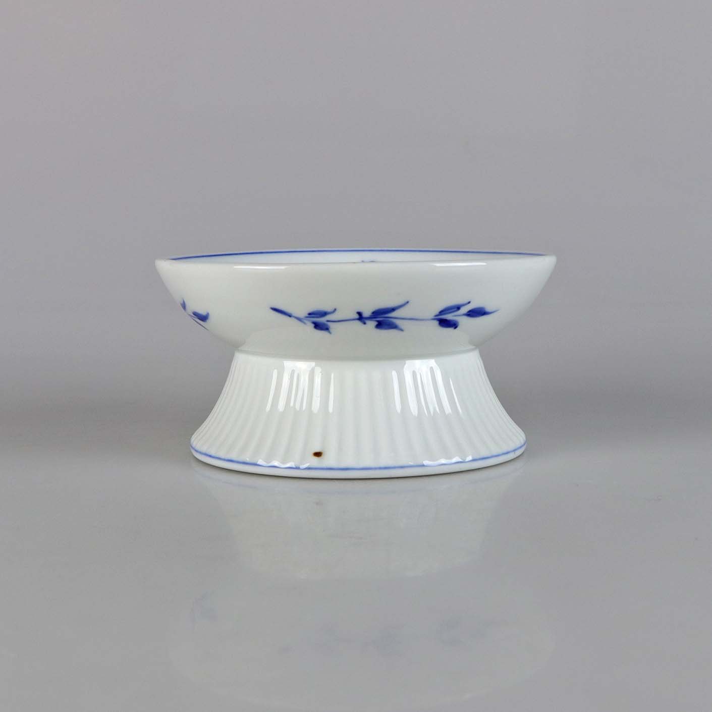 Stage i hvidt porcelæn med blå motiver af blomster og sommerfugle.