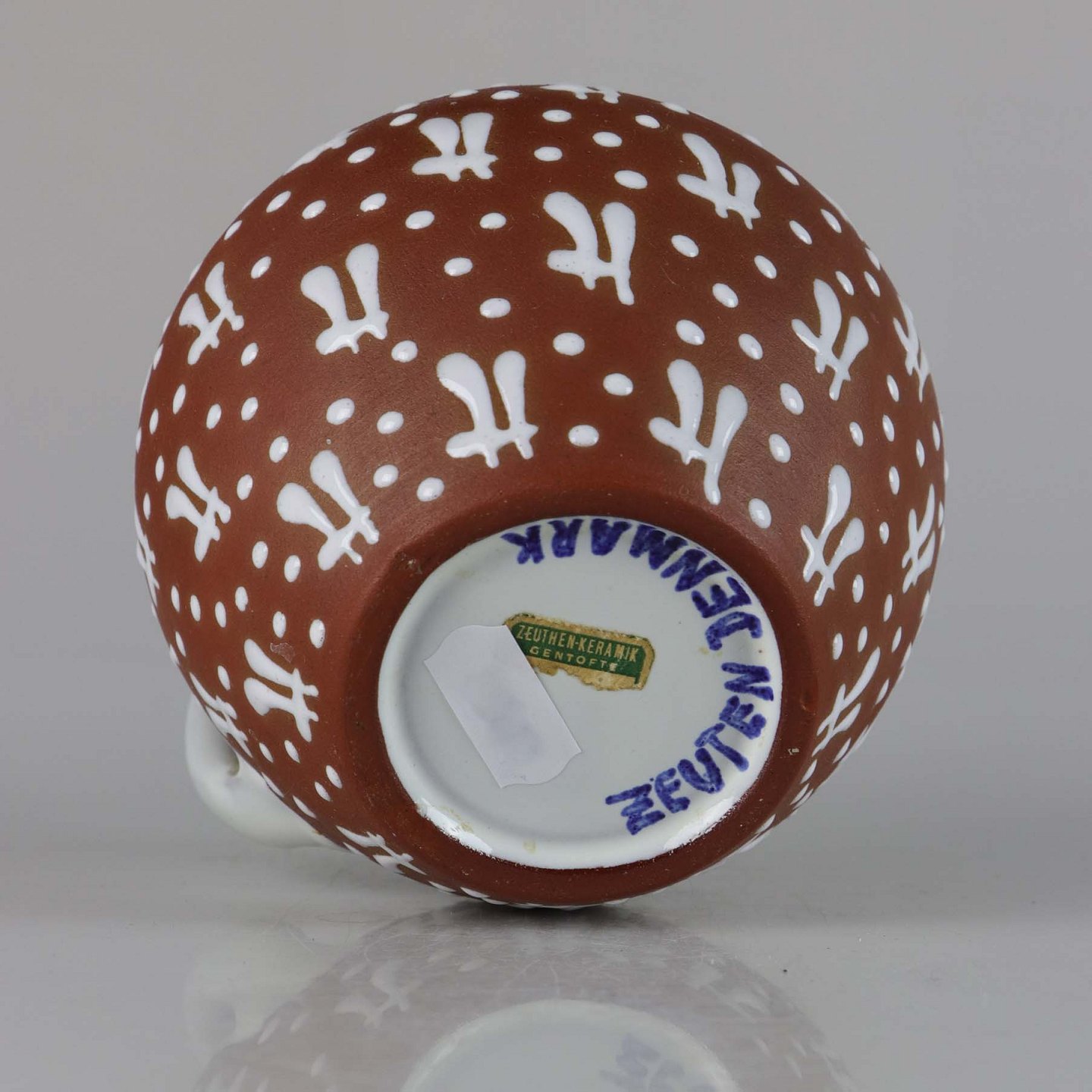 Zeuten kande i rødbrunt keramik med hvidt motiv