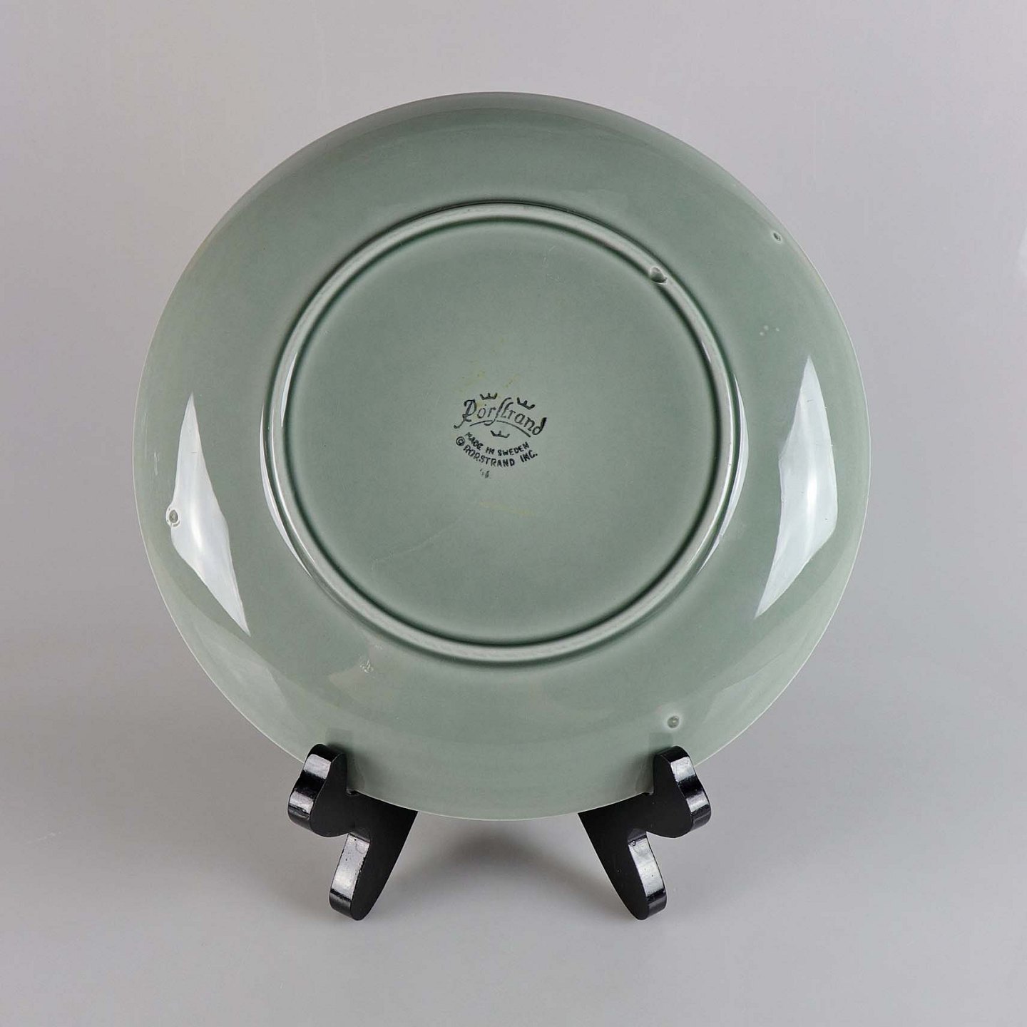 Sjælden set tallerken i fajance fra stellet Blå Eld i den grå farve no 61