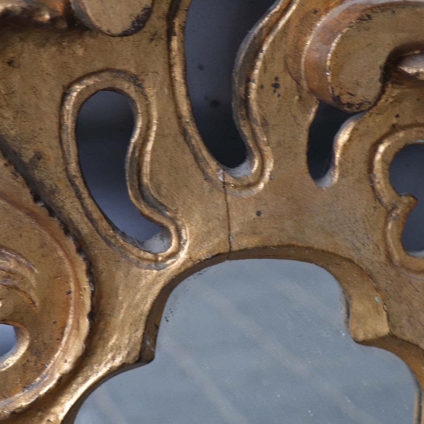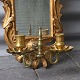 Spejl med guldmalet træramme med en monteret toarmet lysestage i messing.