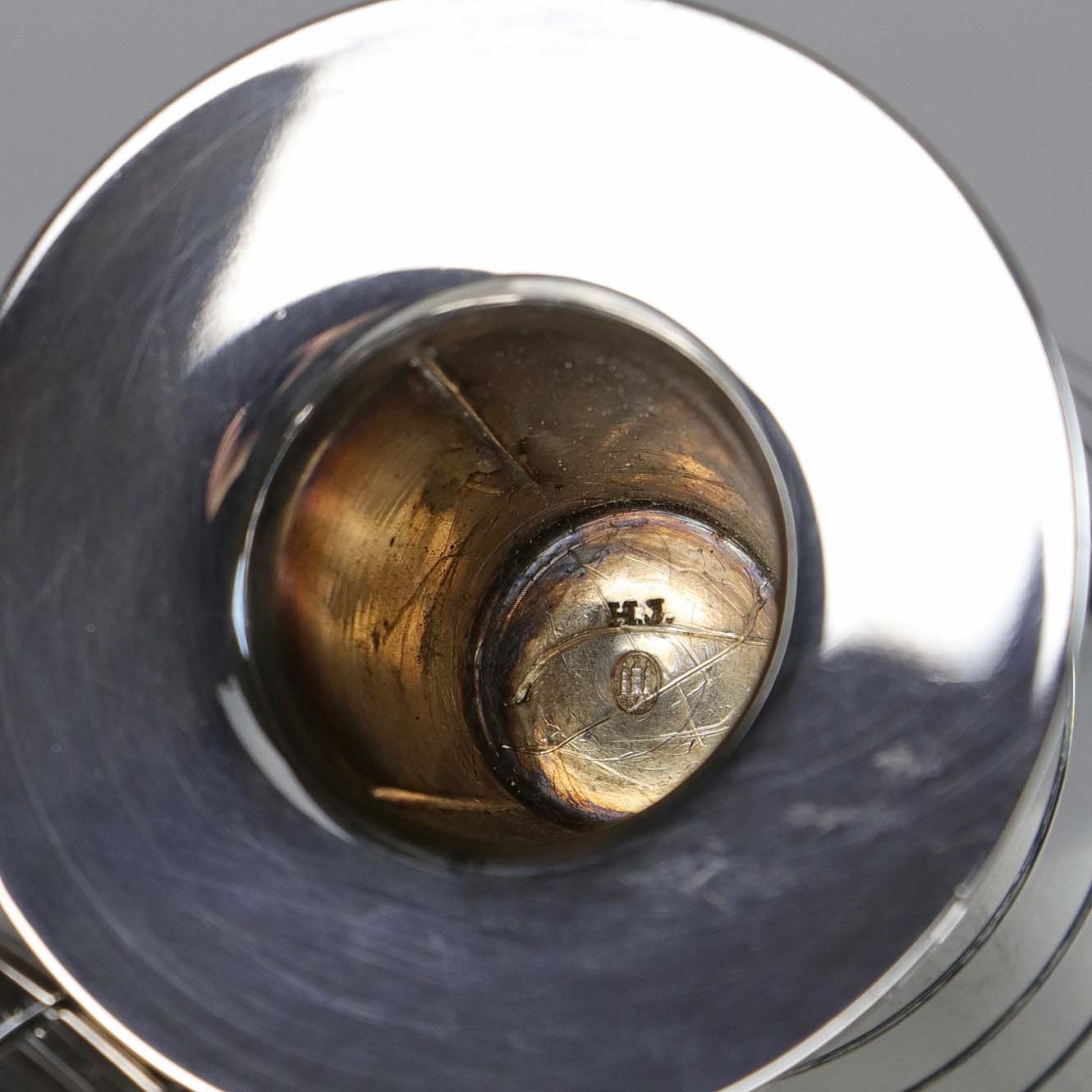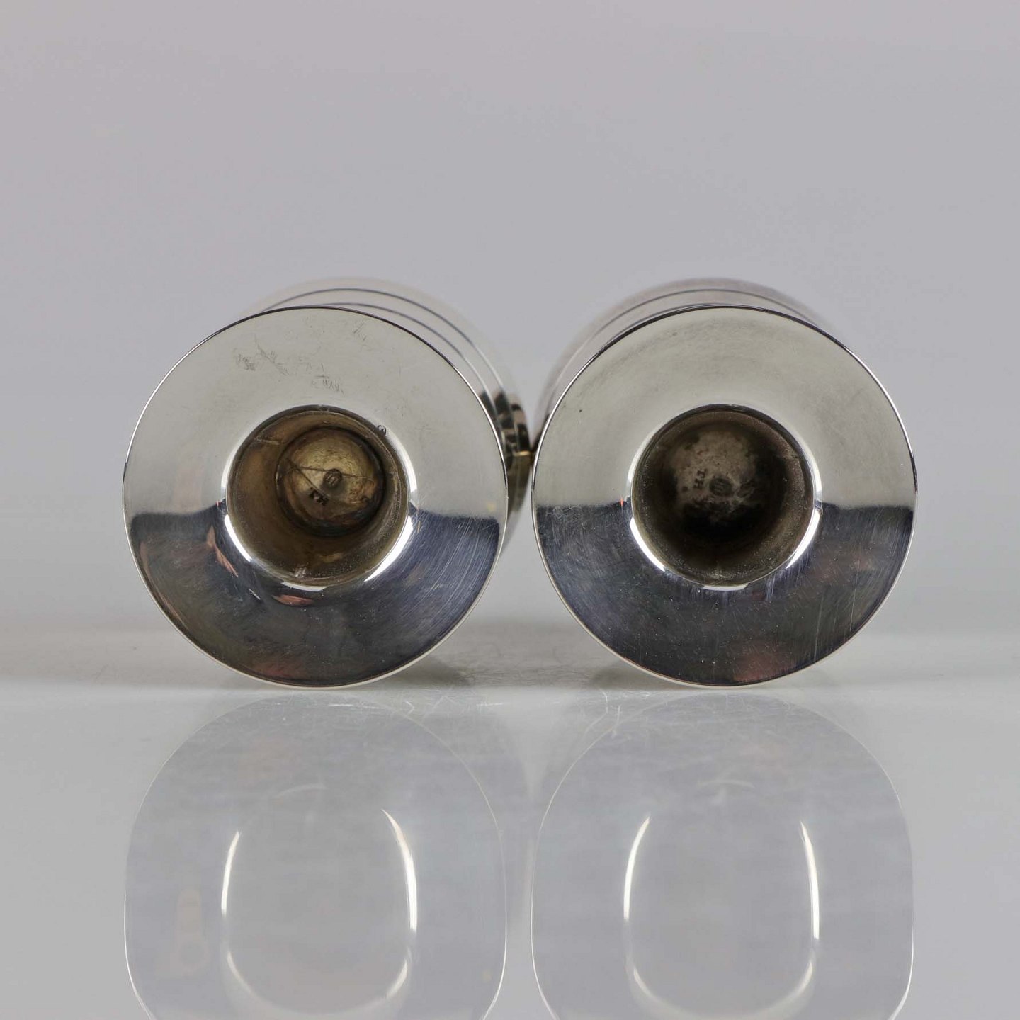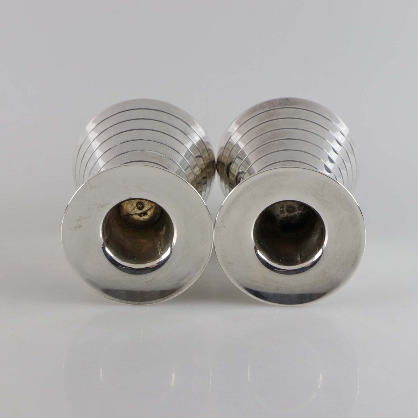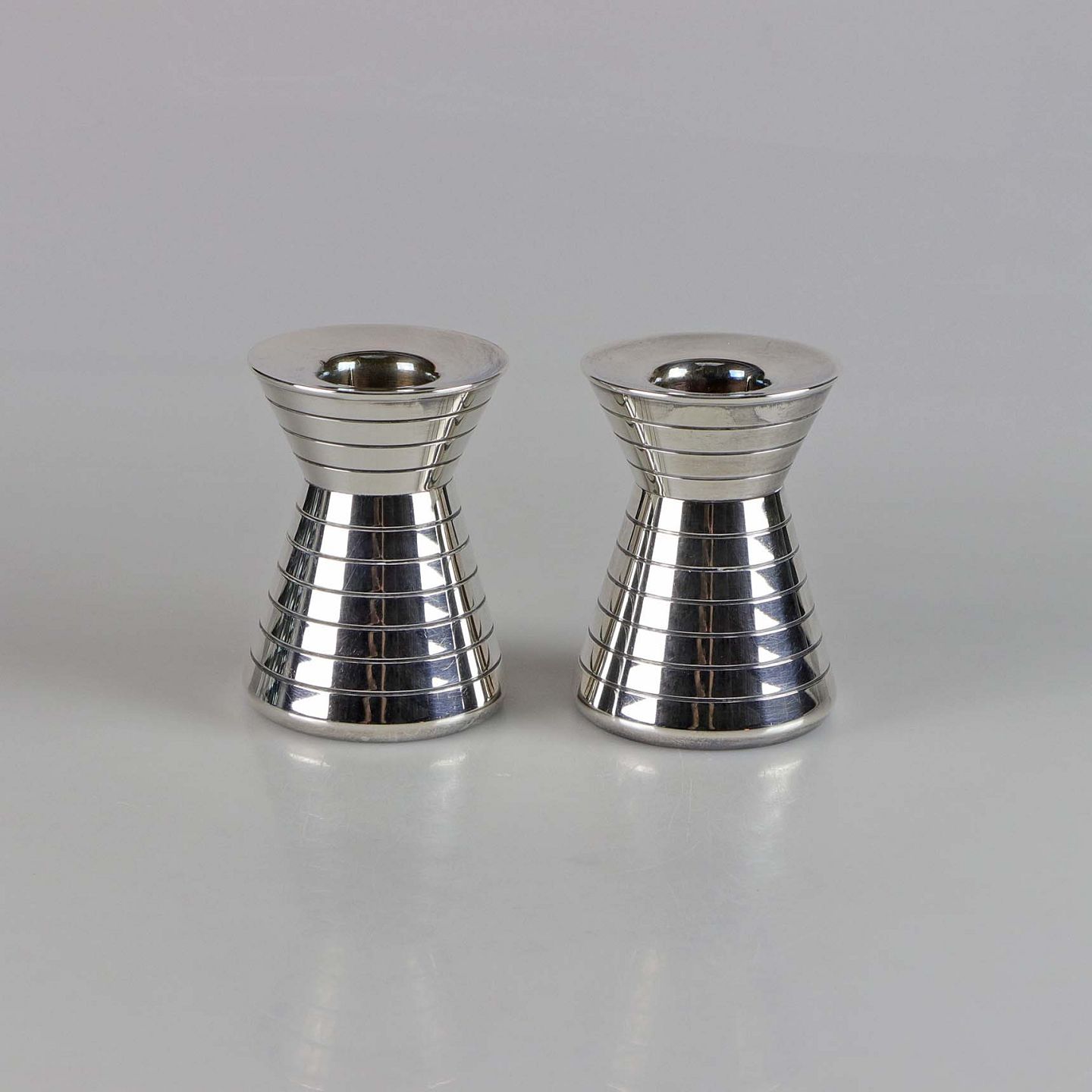 Et sæt lysestager i tretårnet sølv med rillet mønster