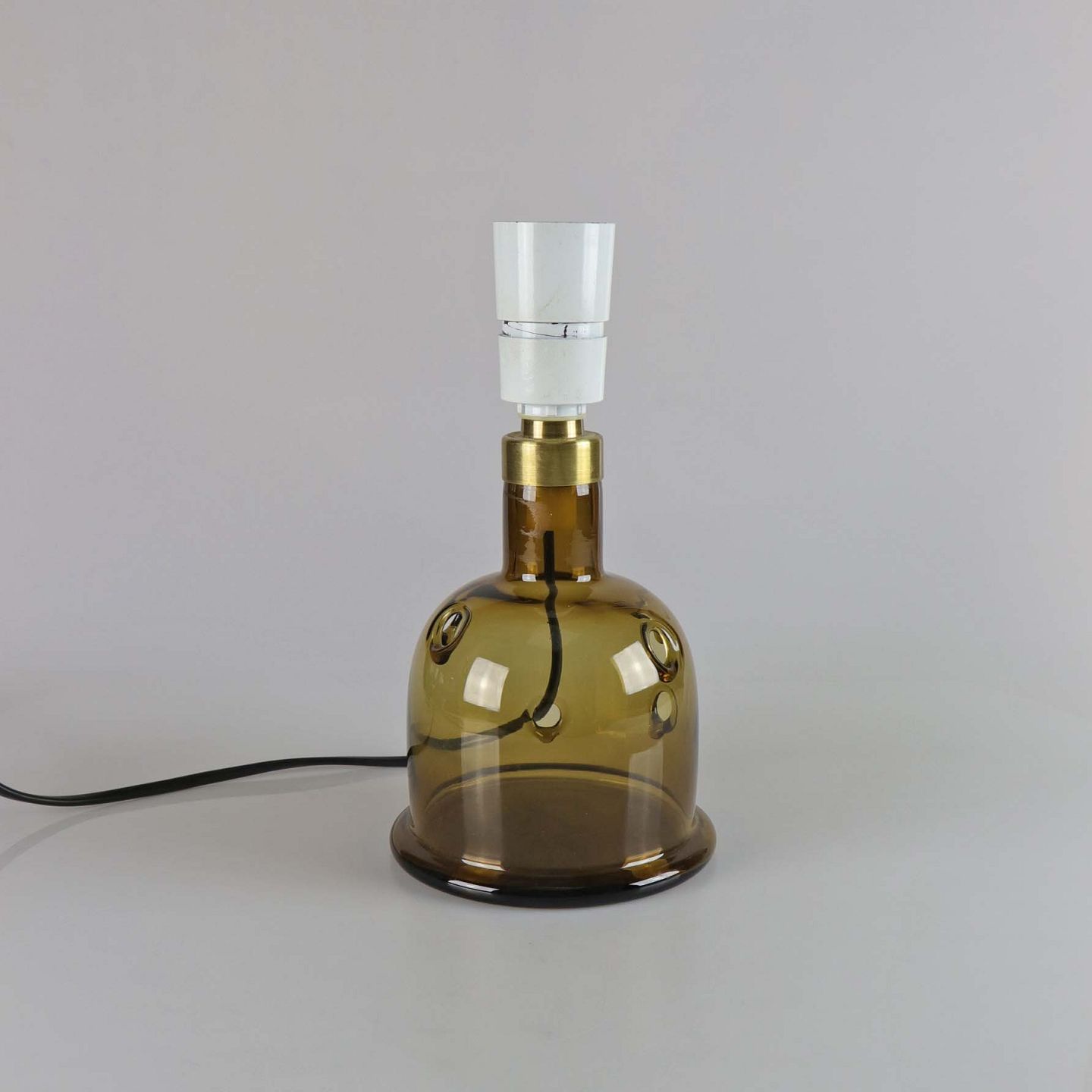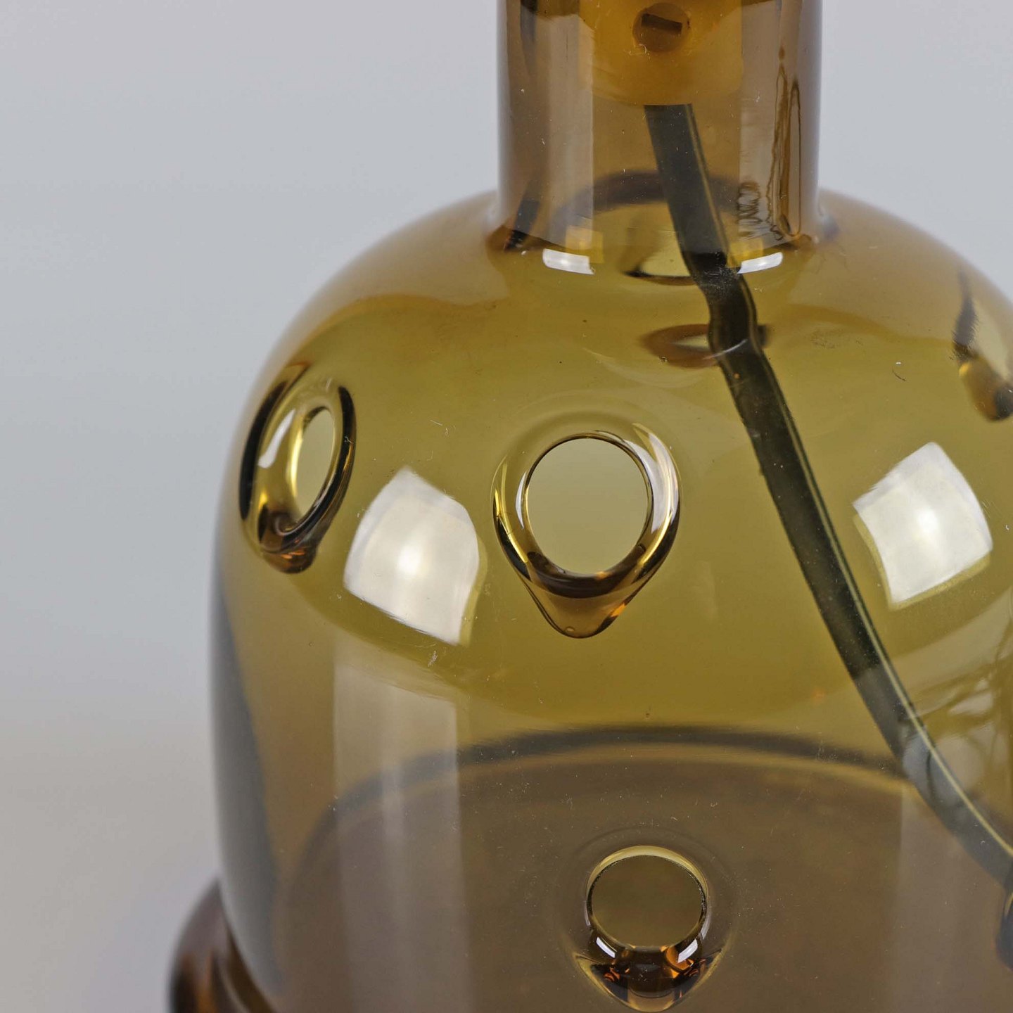 Lampefod i røgfarvet mundblæst glas med huller som mønster