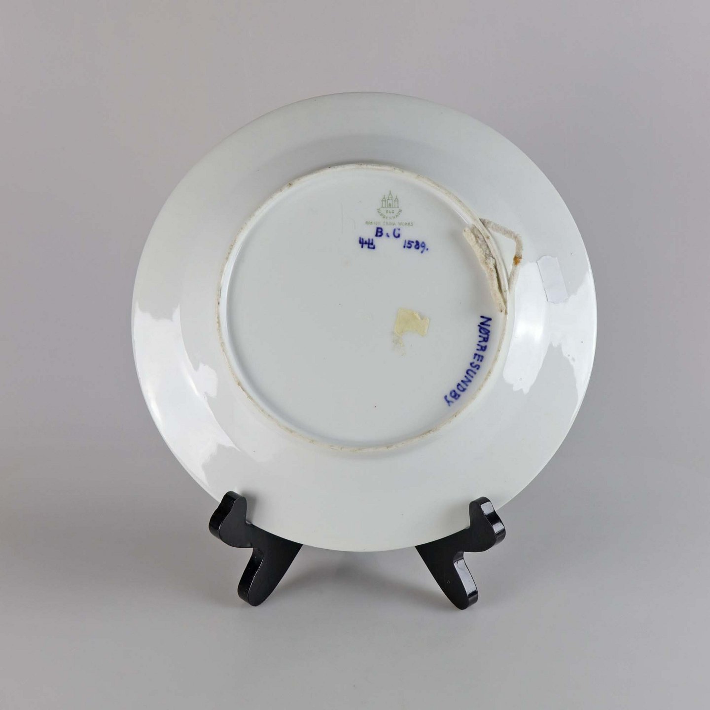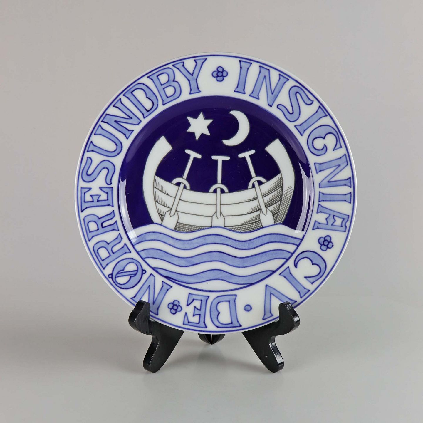 Platte i porcelæn no 1589 med teksten Nørresundby insignia civ de