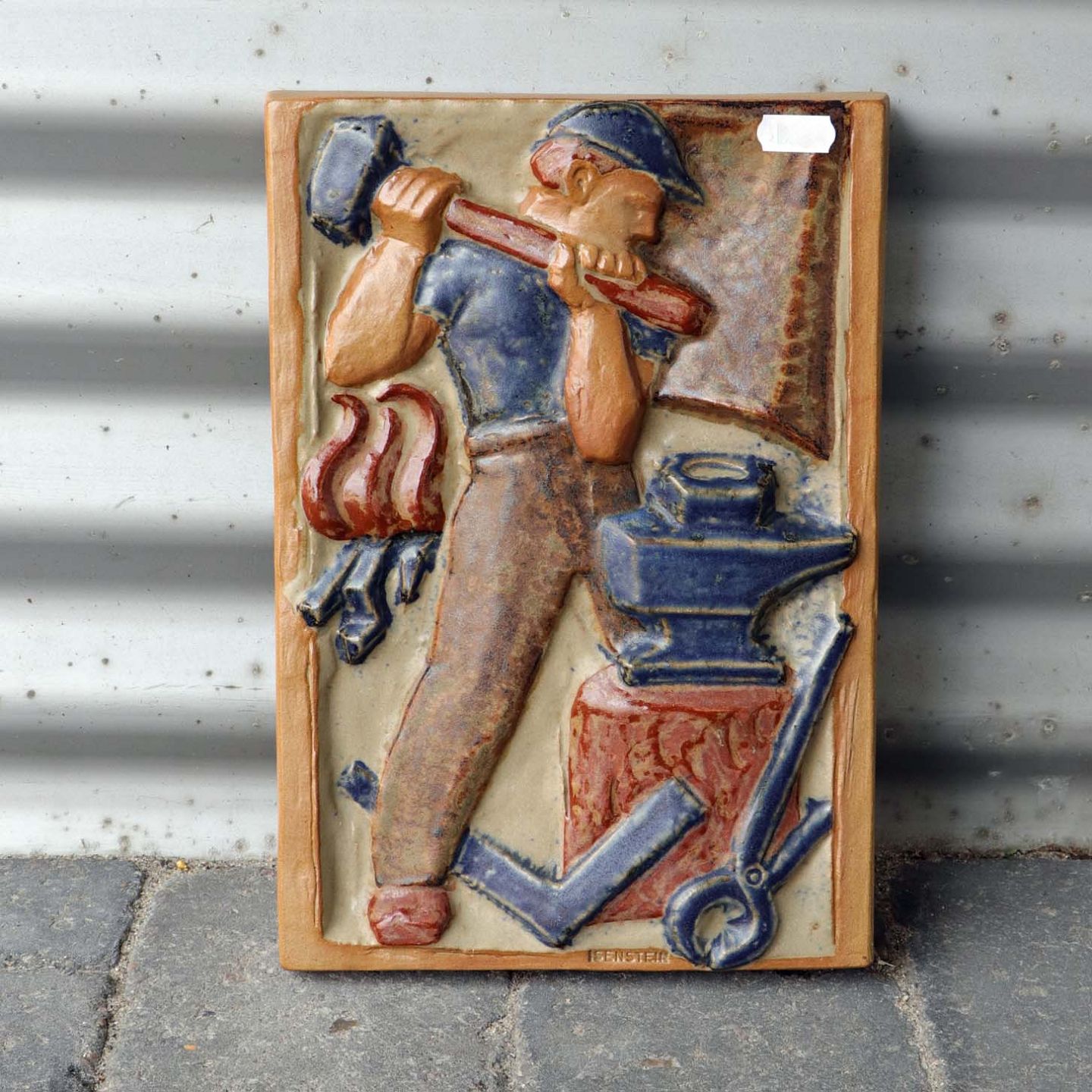 Signeret Isenstein og bagpå er logoet med 3 fisk som er Rønnes byvåben