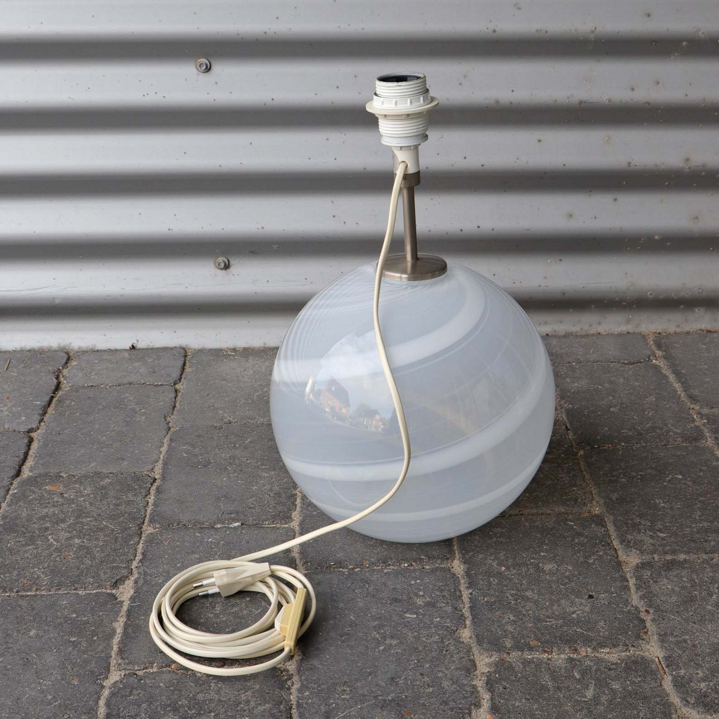 Rund lampefad med opal hvide striber i en spiral
