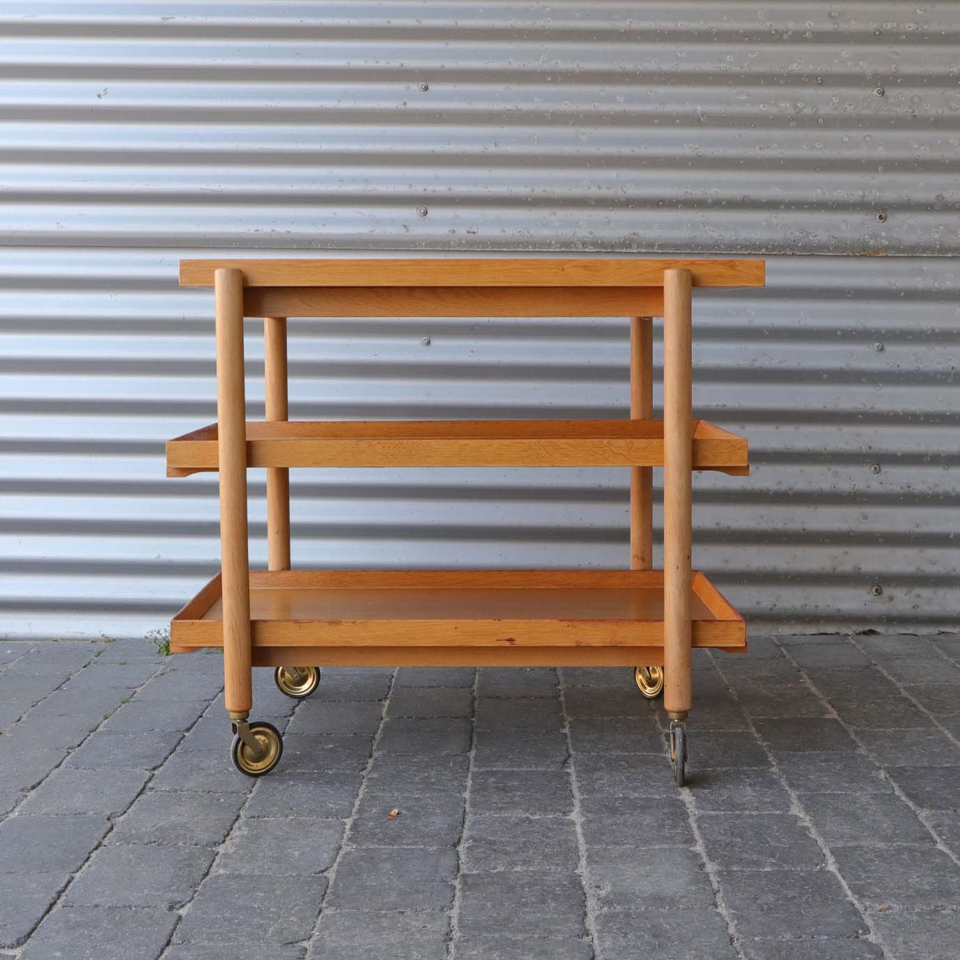 Sjælden rullebord med 3 aftagelige bakker i lakeret egetræ.
