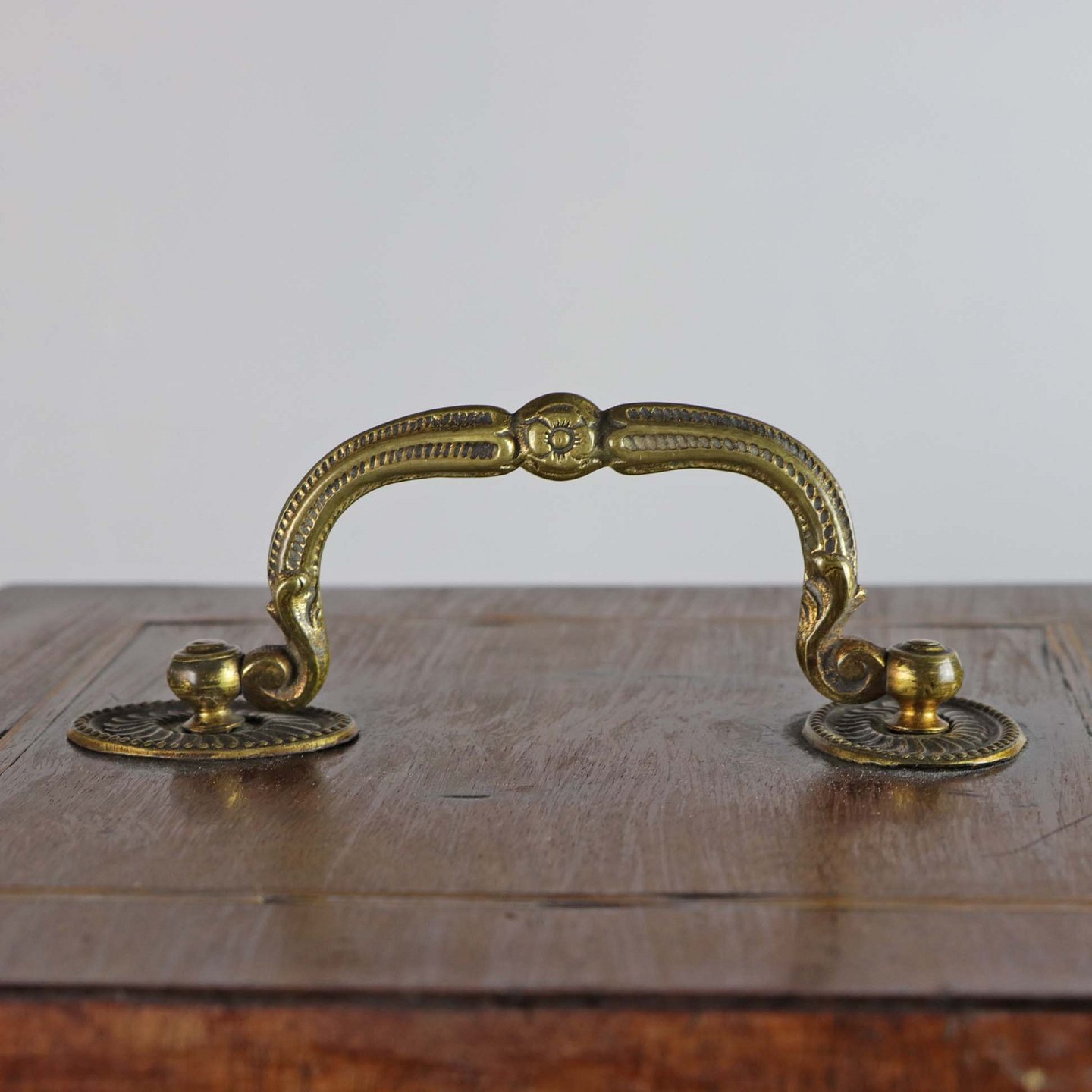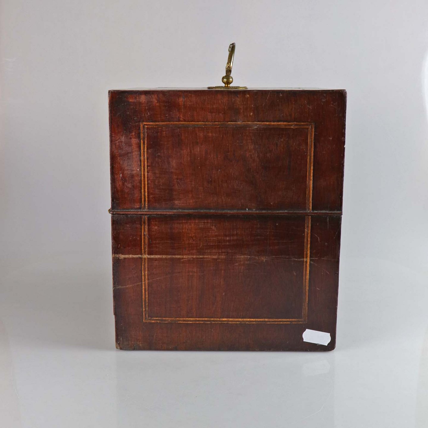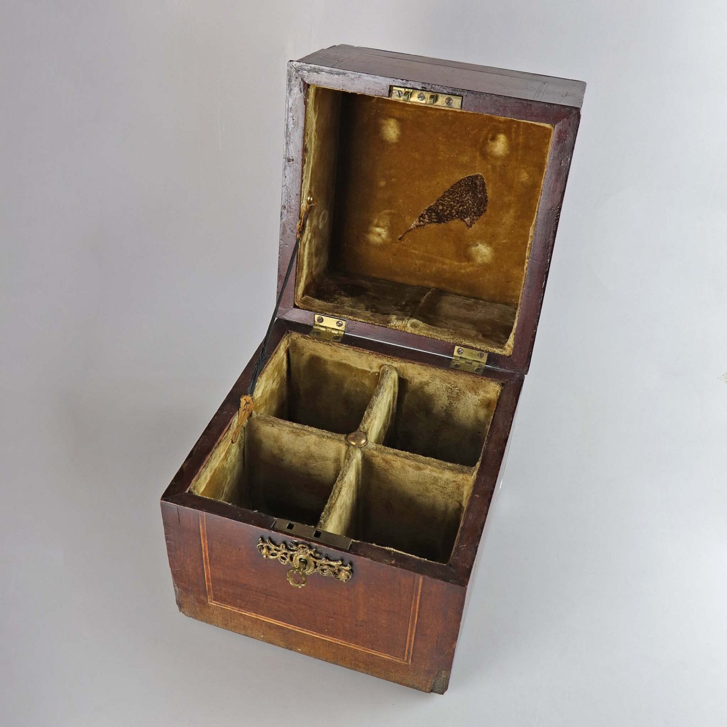 Tantalus med plads til 4 karafler. Skrinet er af lakeret træ med messing håndtag og lås og er foret med stof